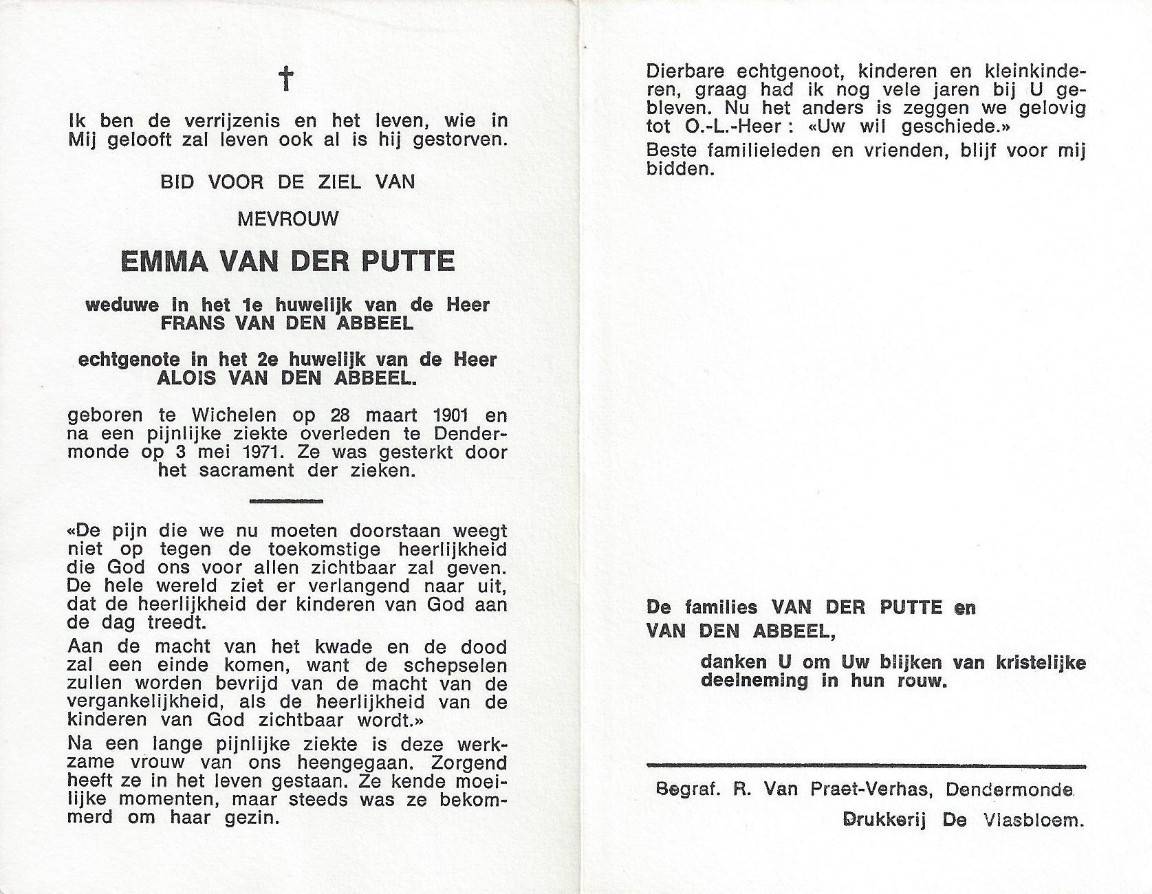 Overlijden van moeder | Emma Alicia Van de Putte 3 mei 1971 (Leeftijd 33 jaar) |