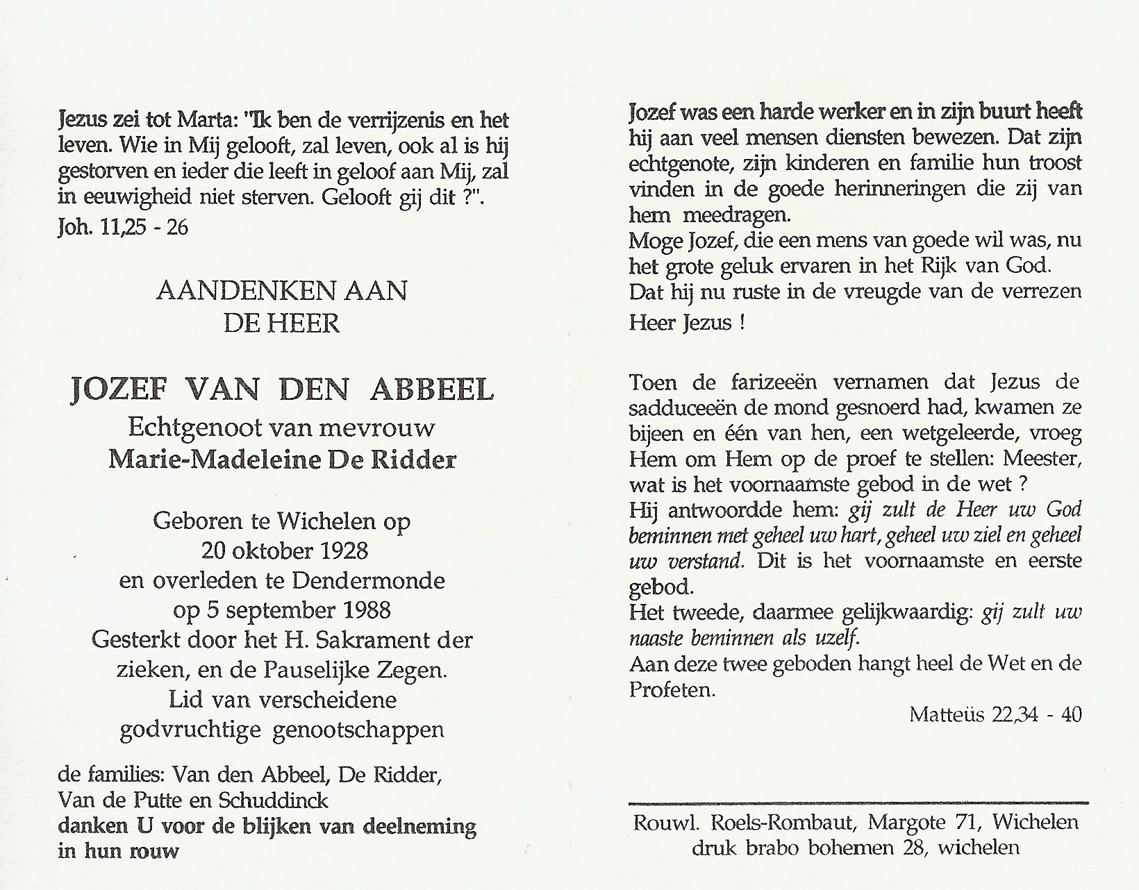 Overlijden van een broer | Jozef Van den Abbeel 5 september 1988 (Leeftijd 55 jaar) |