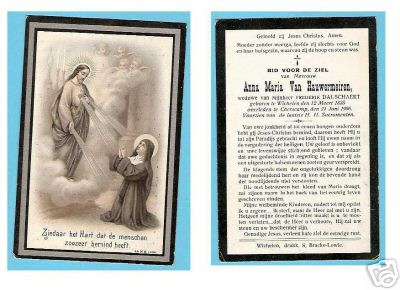 Overlijden van grootvader van moeders kant | Amandus Van Hauwermeiren 6 juli 1882 (Leeftijd 15 jaar) |