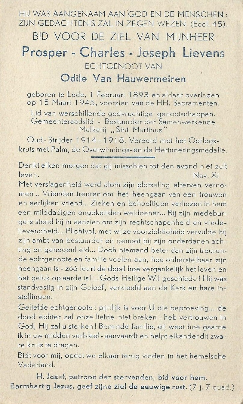 Prosper Jozef Charles Lievens Geboren: 1 februari 1893 38 34 — Lede Overleden: 15 maart 1945 — Lede |