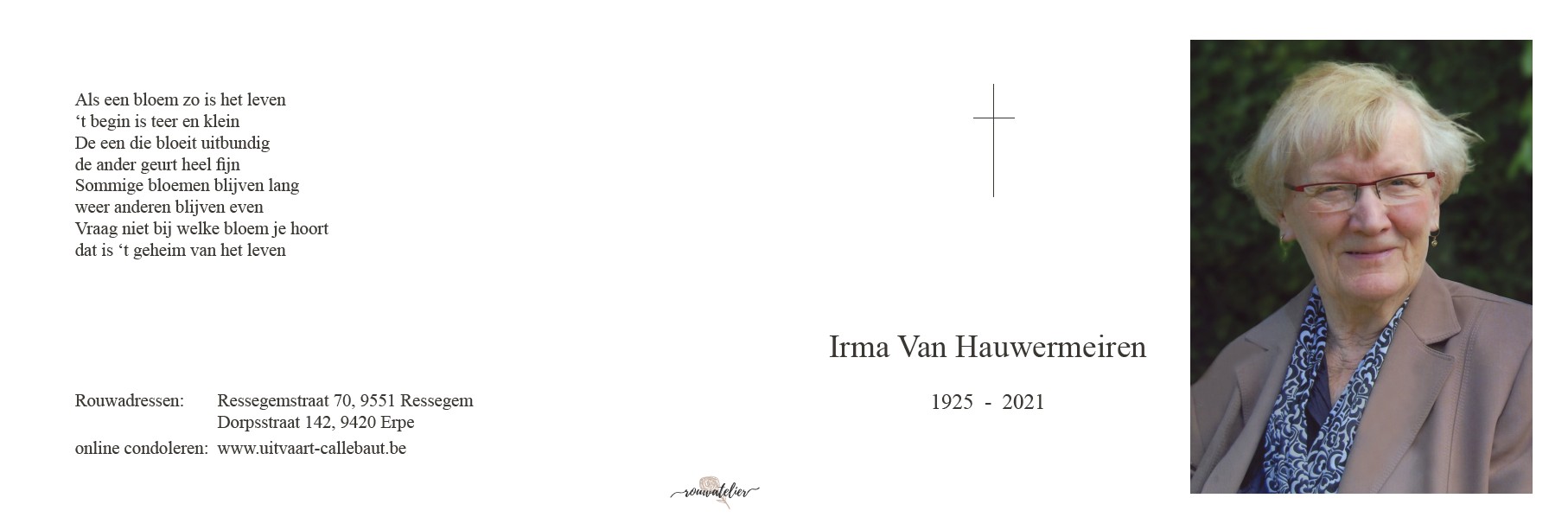 Overlijden van grootmoeder van vaders kant | Irma Maria Van Hauwermeiren 19 april 2021 |