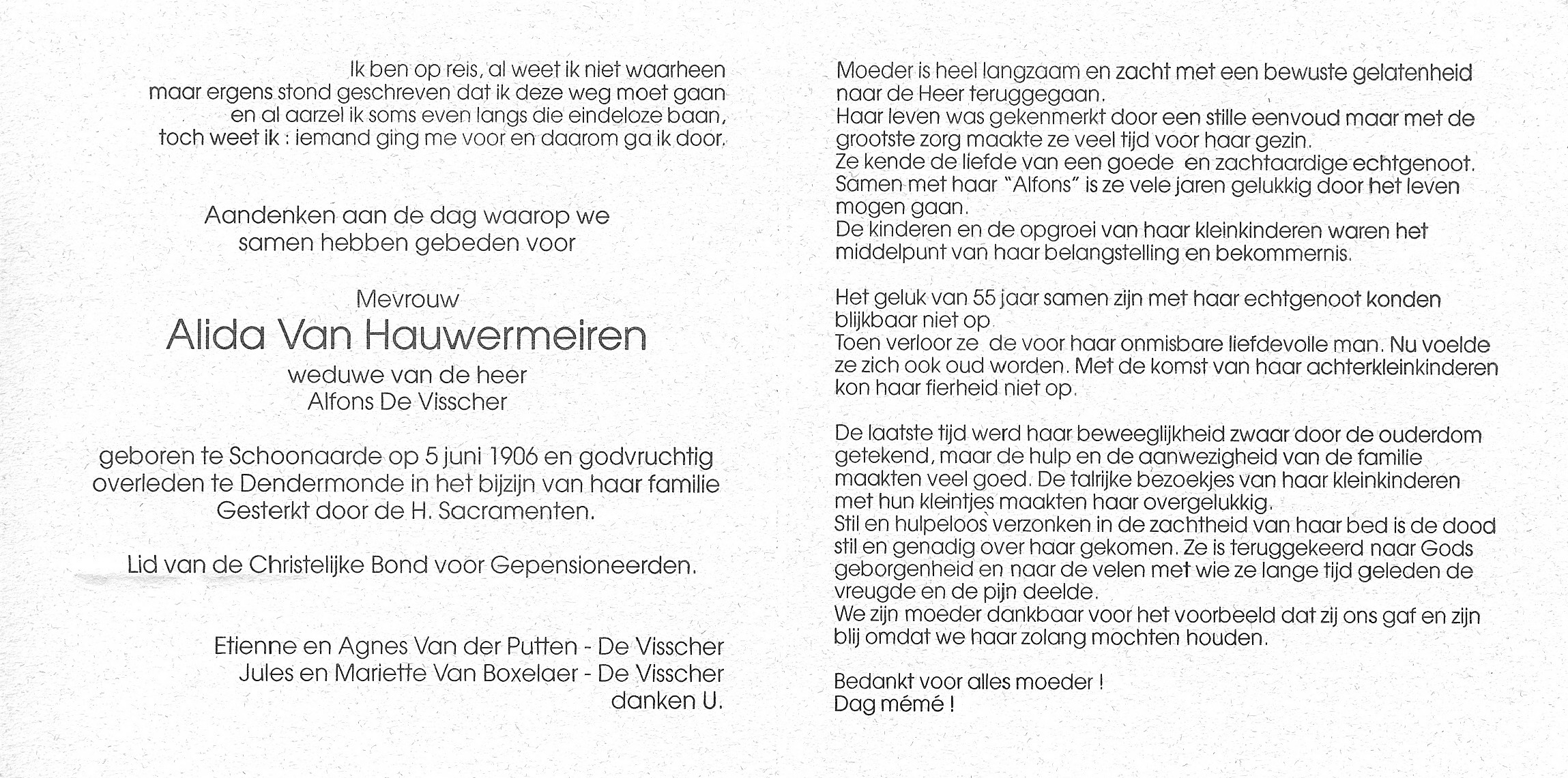 Alida Van HauwermeirenLeeftijd: 92 jaar1906–1998