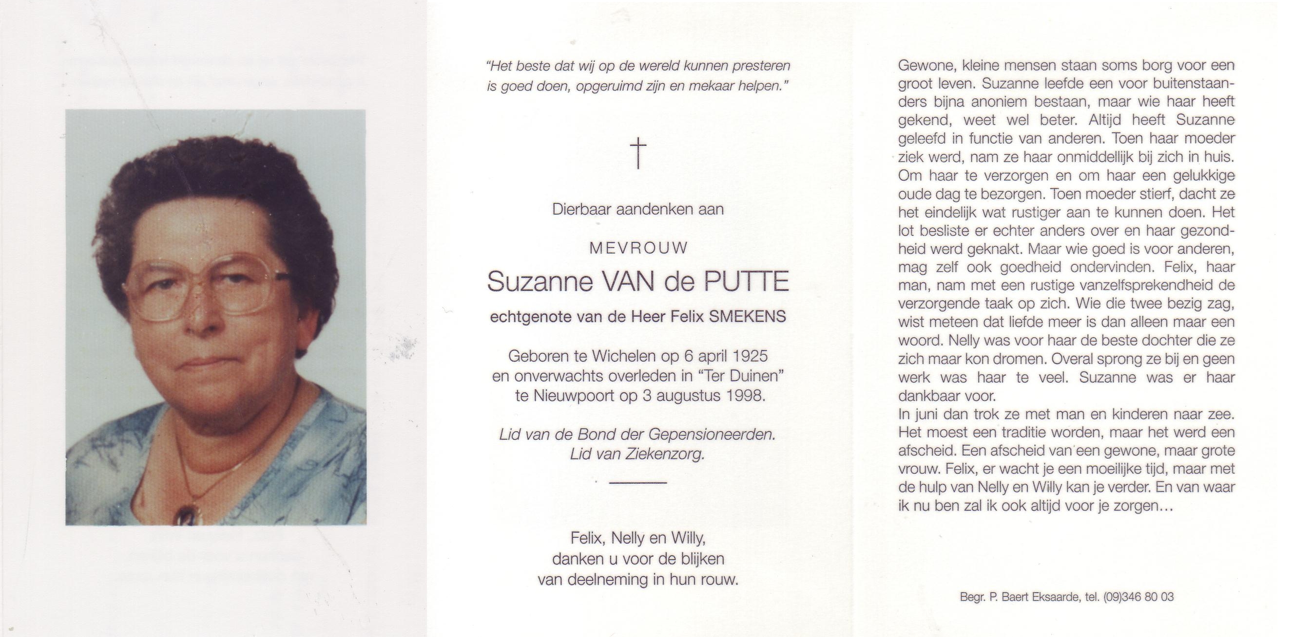 Susanne Dominica Van de PutteLeeftijd: 73 jaar1925–1998