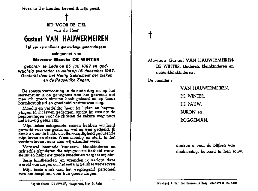 Overlijden van grootvader van moeders kant | Gustaaf Van Hauwermeiren 16 december 1967 (Leeftijd 28 jaar) |