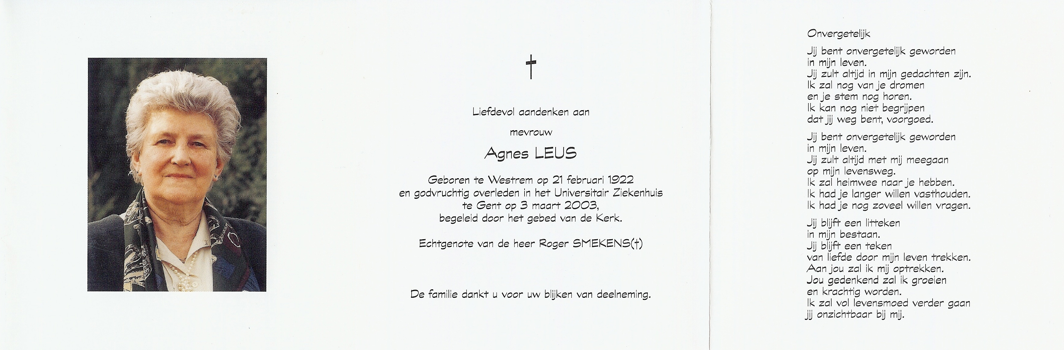 Agnes LeusLeeftijd: 81 jaar1922–2003