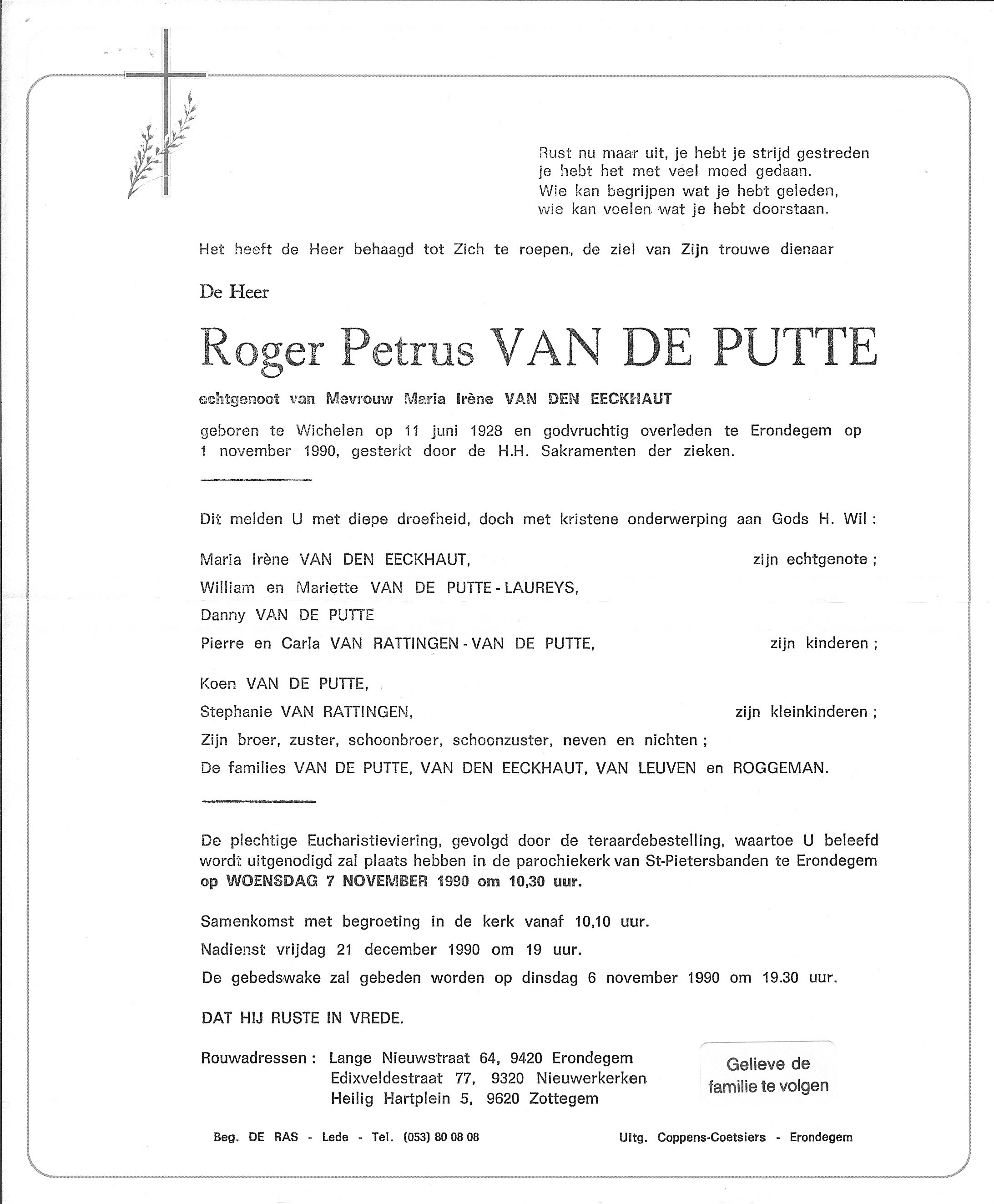 Roger Petrus Van de PutteLeeftijd: 62 jaar1928–1990