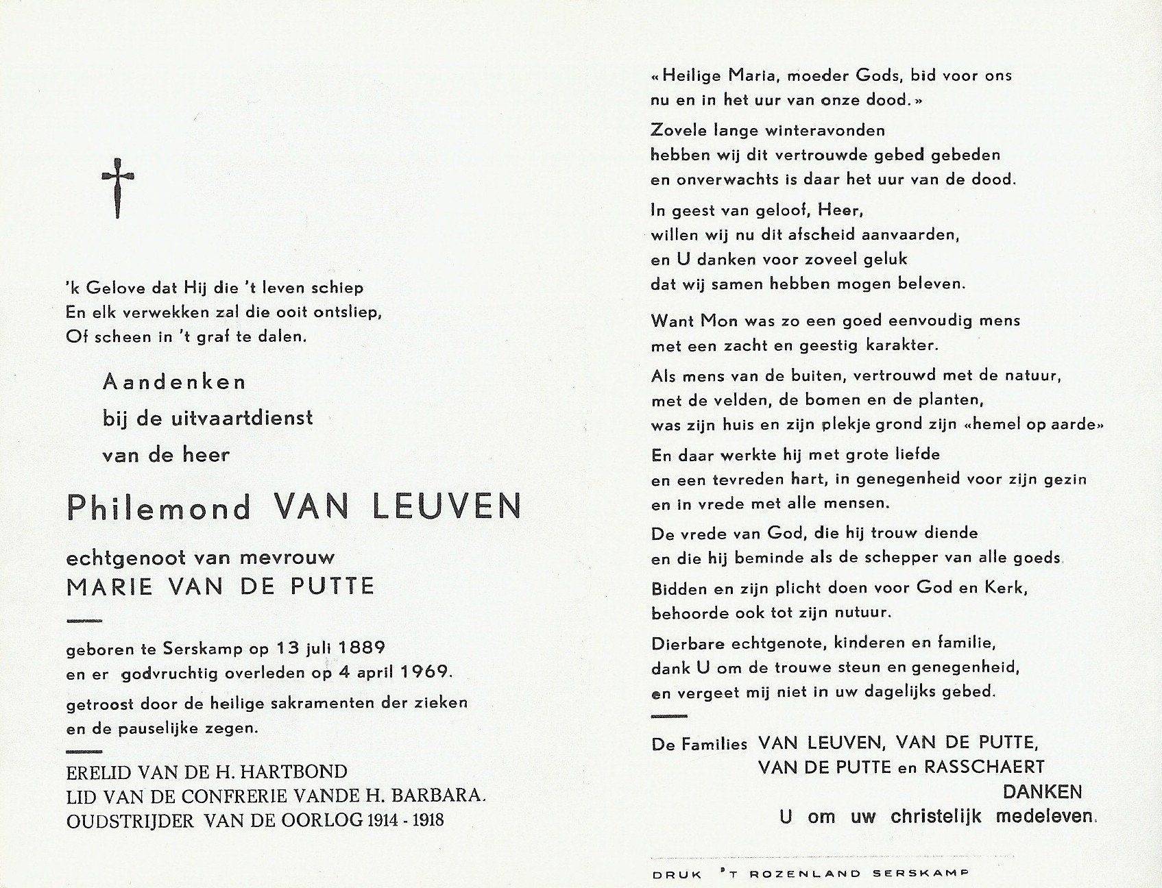 Begrafenis van een broer | Philemond Van Leuven 8 april 1969 (Leeftijd 68 jaar) |
