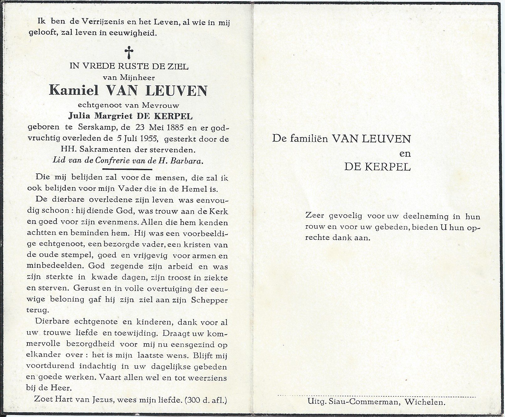 Kamiel Van Leuven Geboren: 23 mei 1885 32 30 — Serskamp Overleden: 5 juli 1955 — Serskamp |