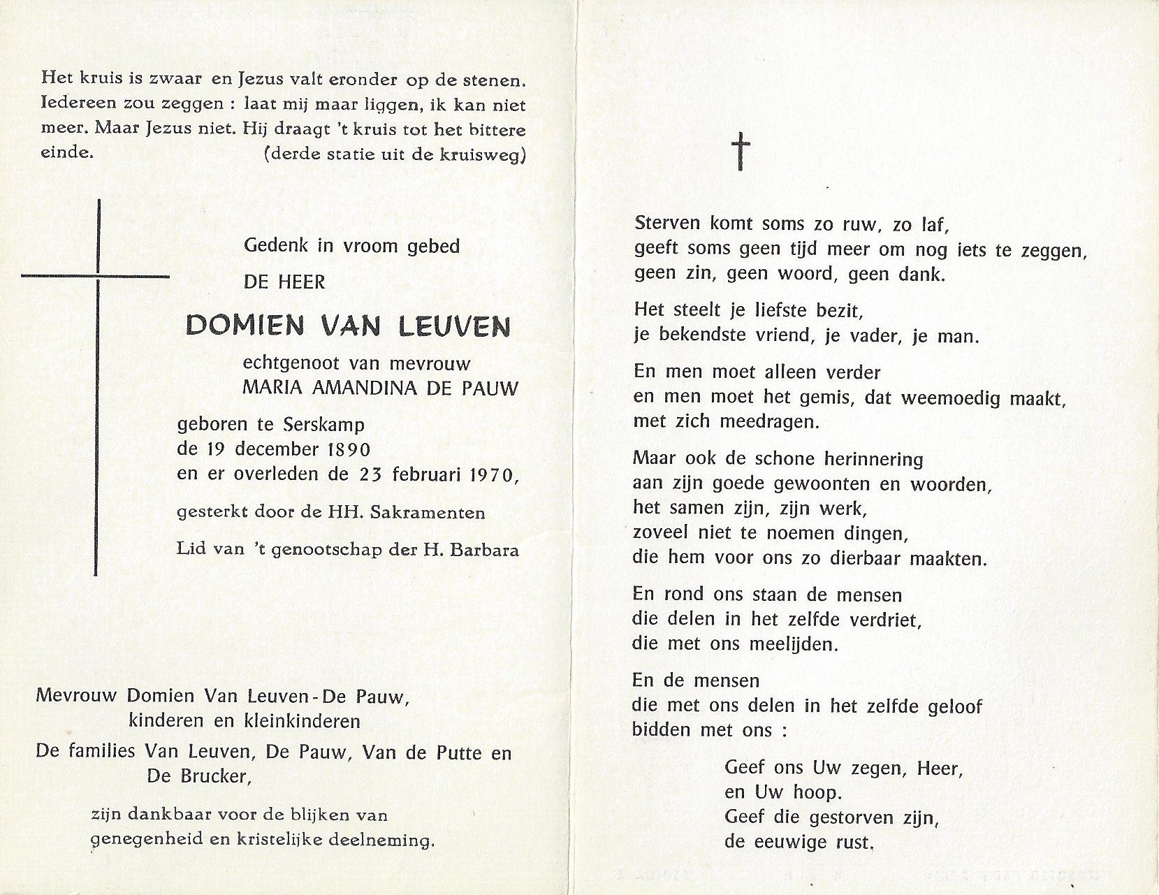 Overlijden van een broer | Dominicus Van Leuven 23 februari 1970 (Leeftijd 69 jaar) |
