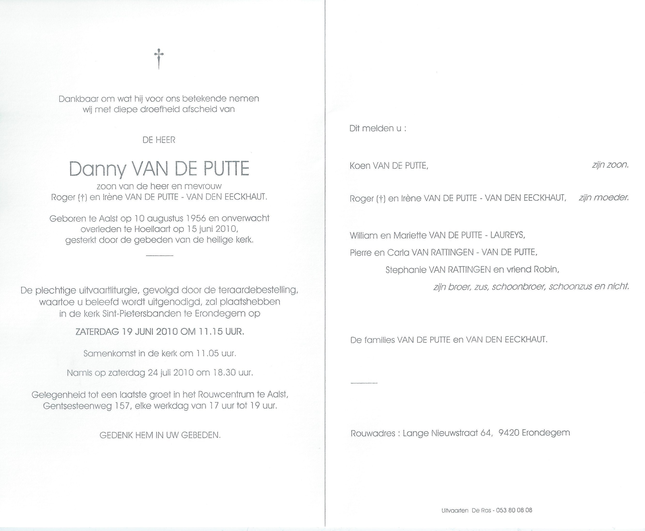 Begrafenis van vader | Roger Petrus Van de Putte 7 november 1990 (Leeftijd 34 jaar) |