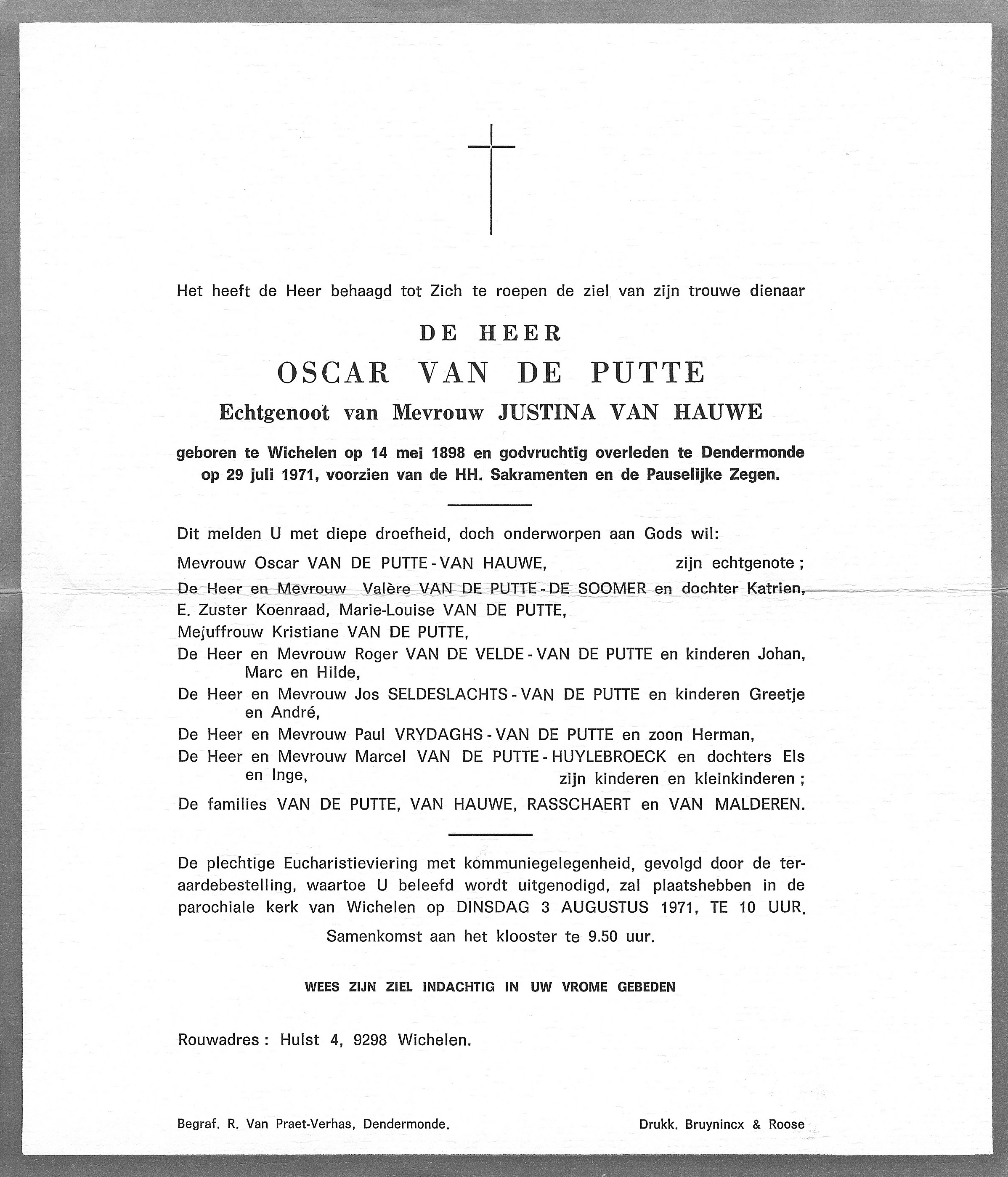 Begrafenis van vader | Oscar Van de Putte 3 augustus 1971 (Leeftijd 41 jaar) |