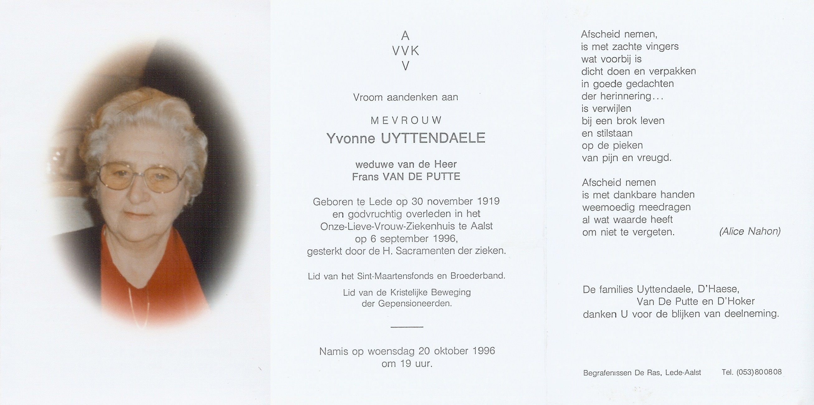 Yvonne UyttendaeleLeeftijd: 76 jaar1919–1996