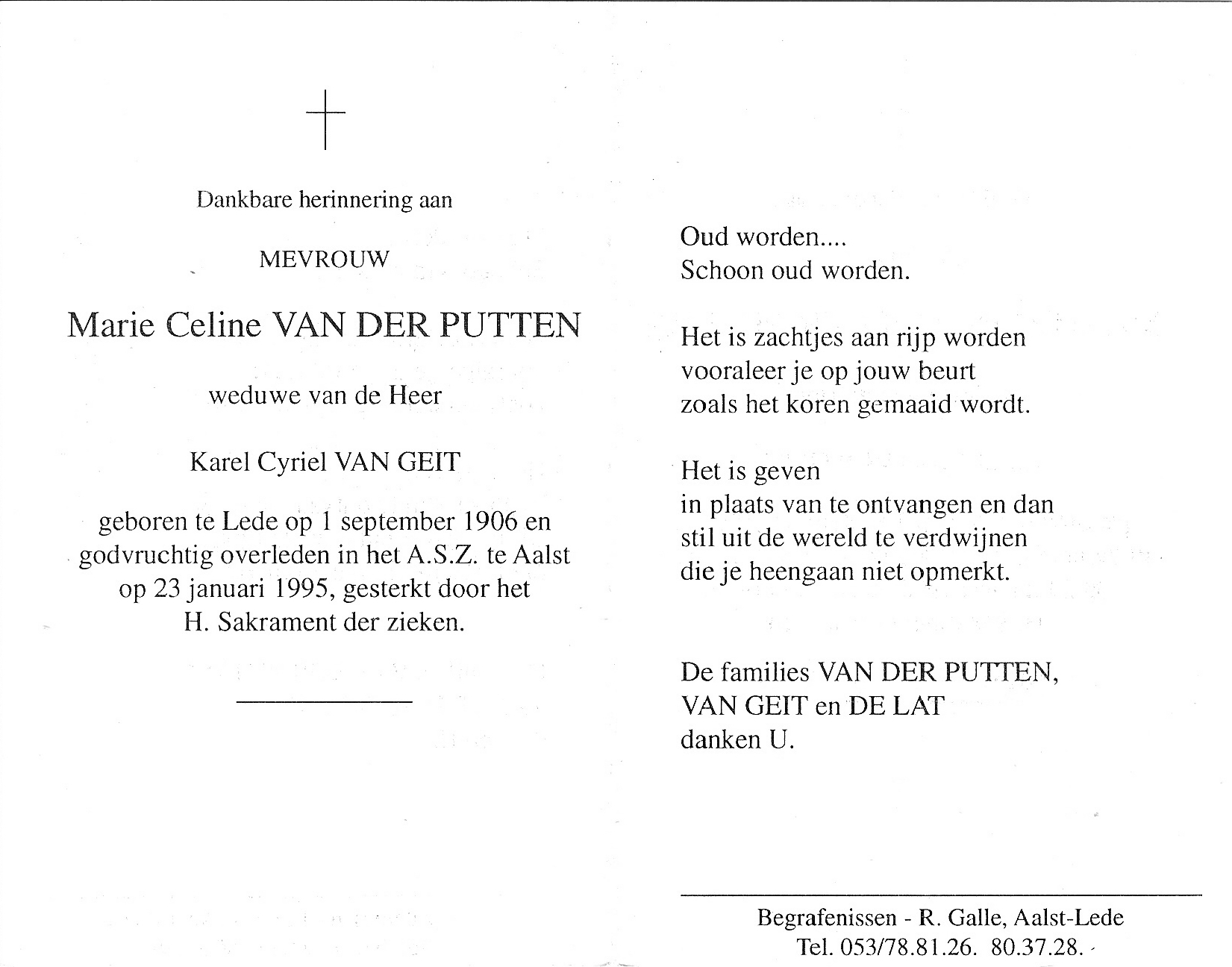 Maria Celina Van der PuttenLeeftijd: 88 jaar1906–1995