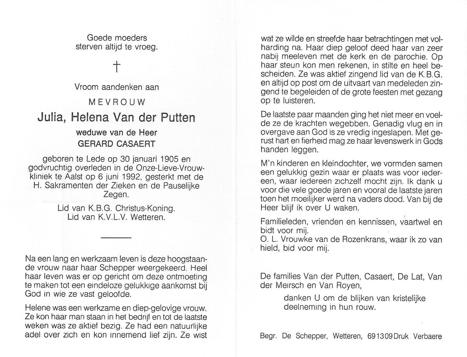Overlijden van een zus | Helena Julia Van der Putten 6 juni 1992 (Leeftijd 85 jaar) |