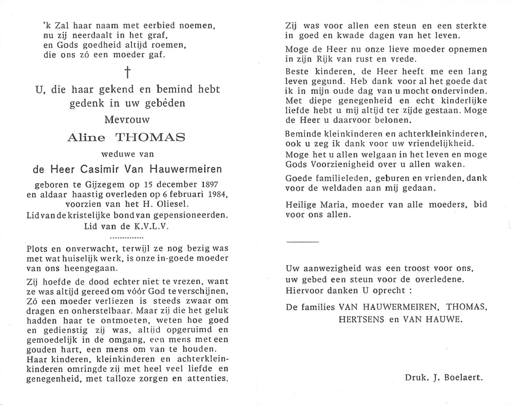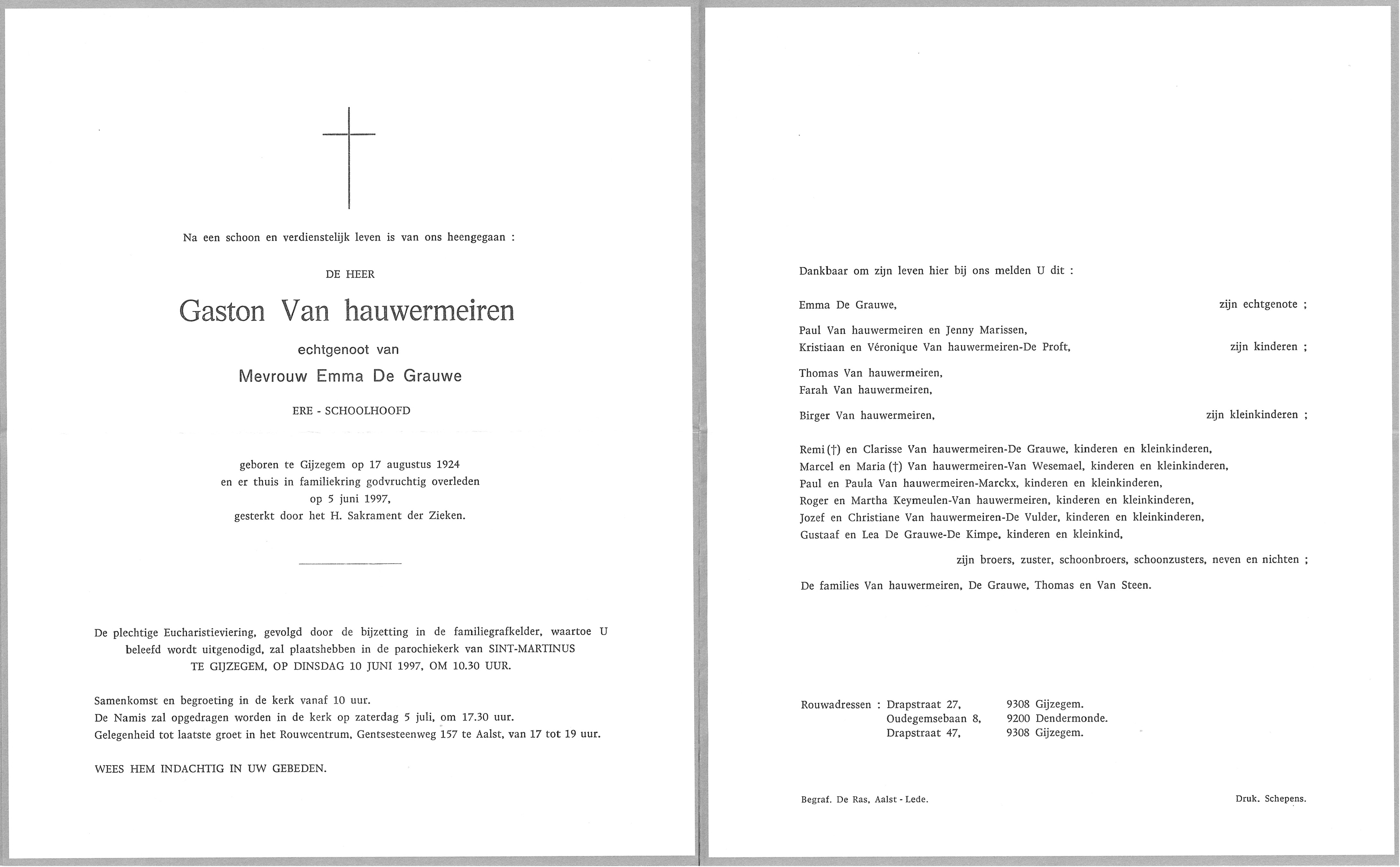 Begrafenis van vader | Gaston Van Hauwermeiren 10 juni 1997 (Leeftijd 44 jaar) |