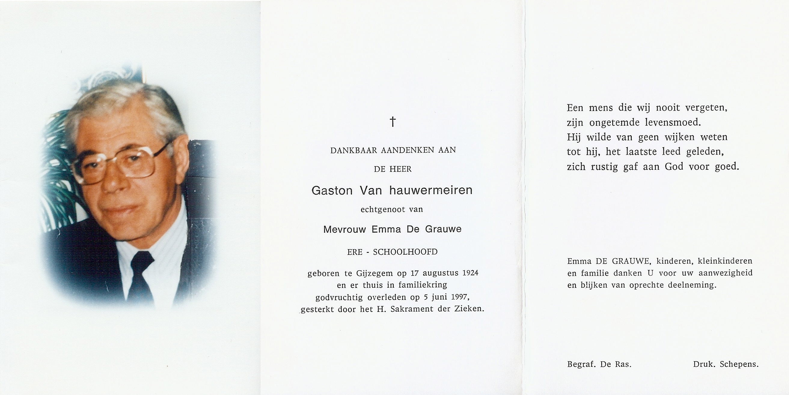 Begrafenis van een broer | Gaston Van Hauwermeiren 10 juni 1997 (Leeftijd 65 jaar) |