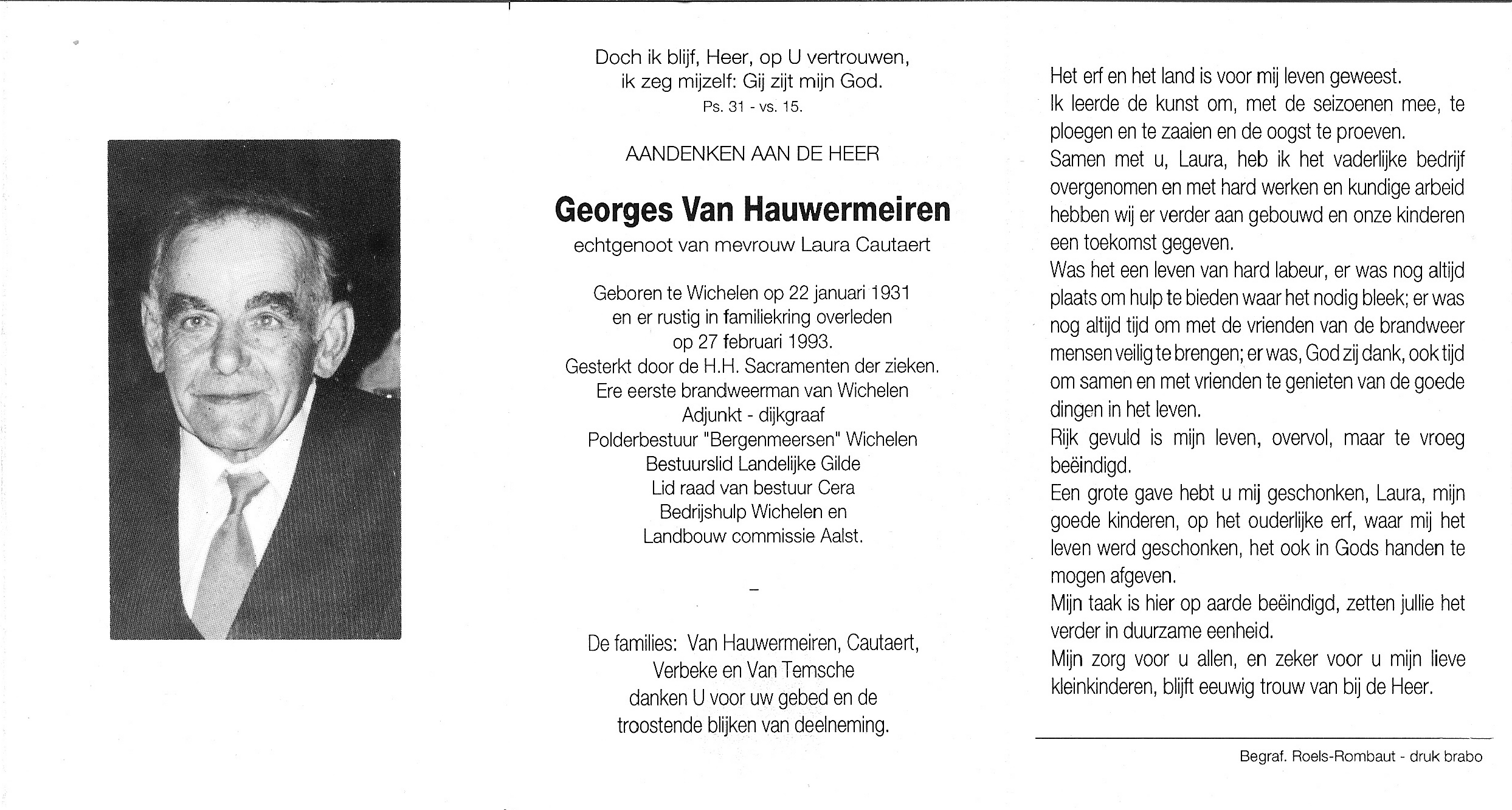 Begrafenis van een broer | Georges Van Hauwermeiren 6 maart 1993 (Leeftijd 66 jaar) |