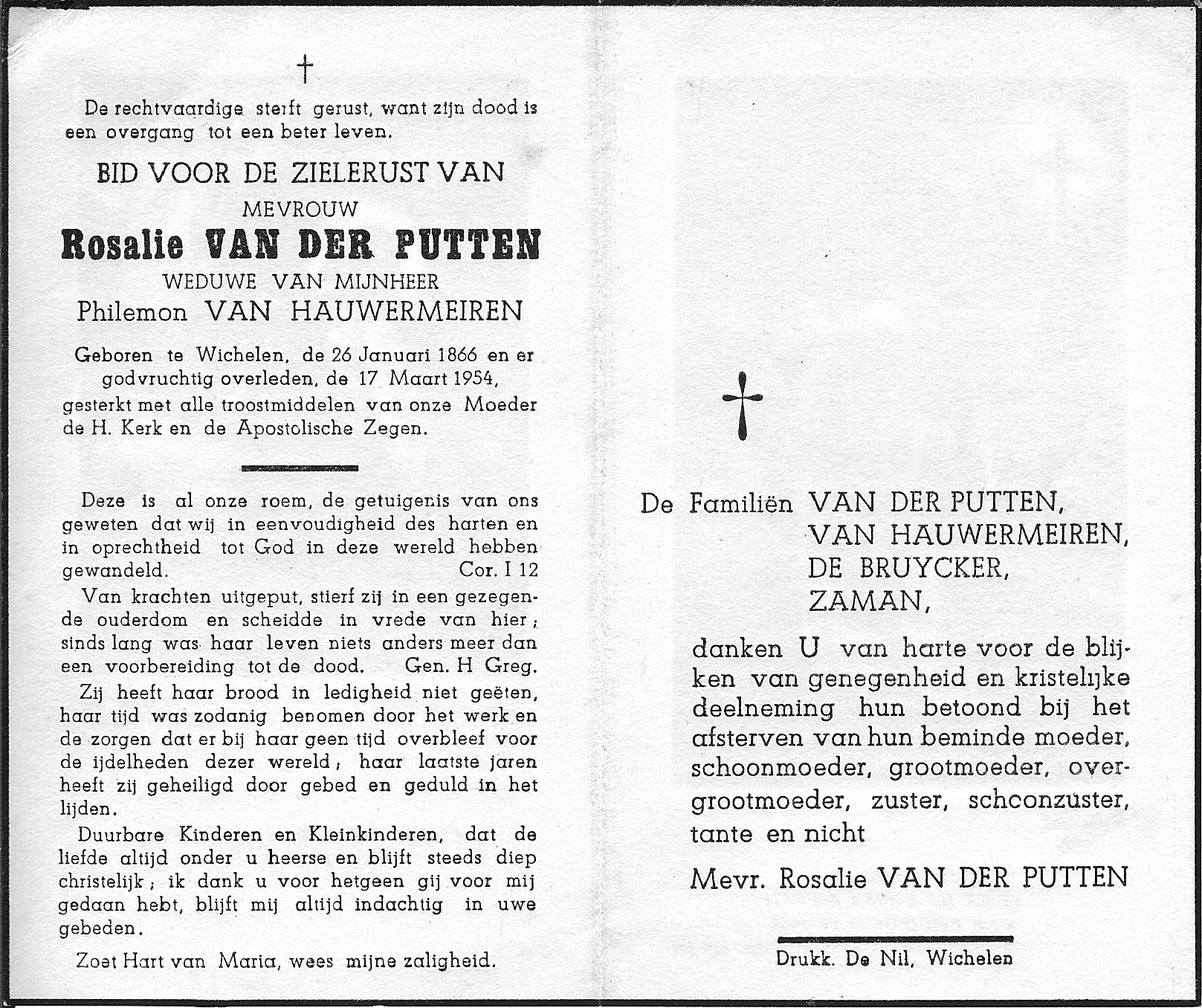 Overlijden van grootmoeder van vaders kant | Rosalie Van der Putten 17 maart 1954 (Leeftijd 27 jaar) |