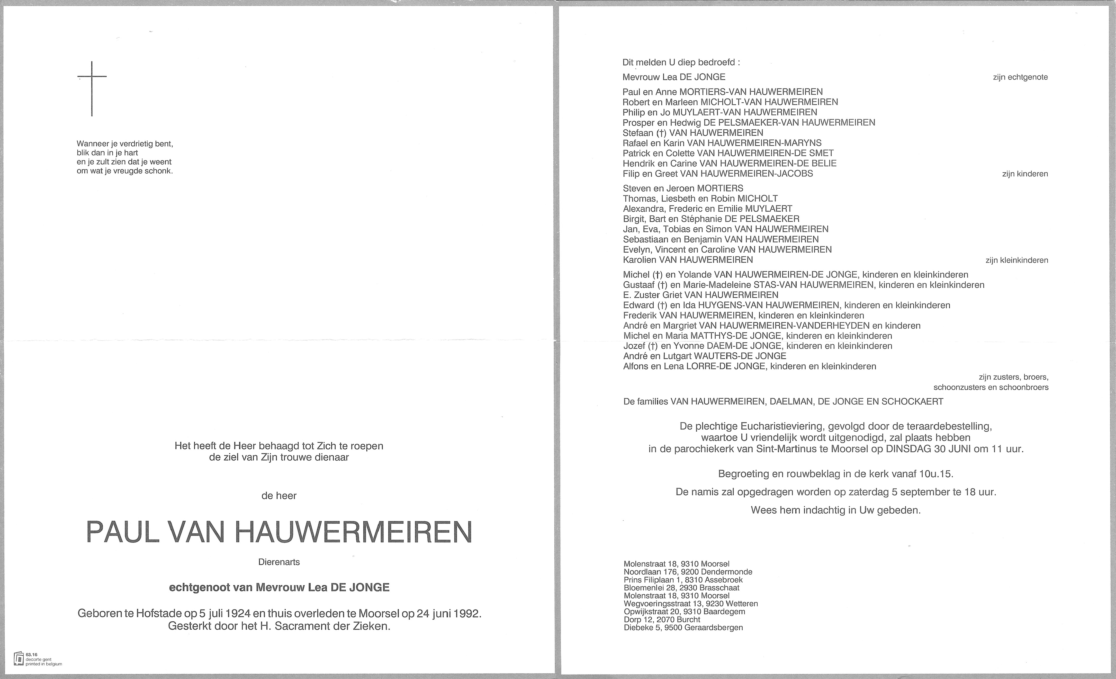Overlijden van een broer | Michel Van Hauwermeiren 10 maart 1988 (Leeftijd 63 jaar) |