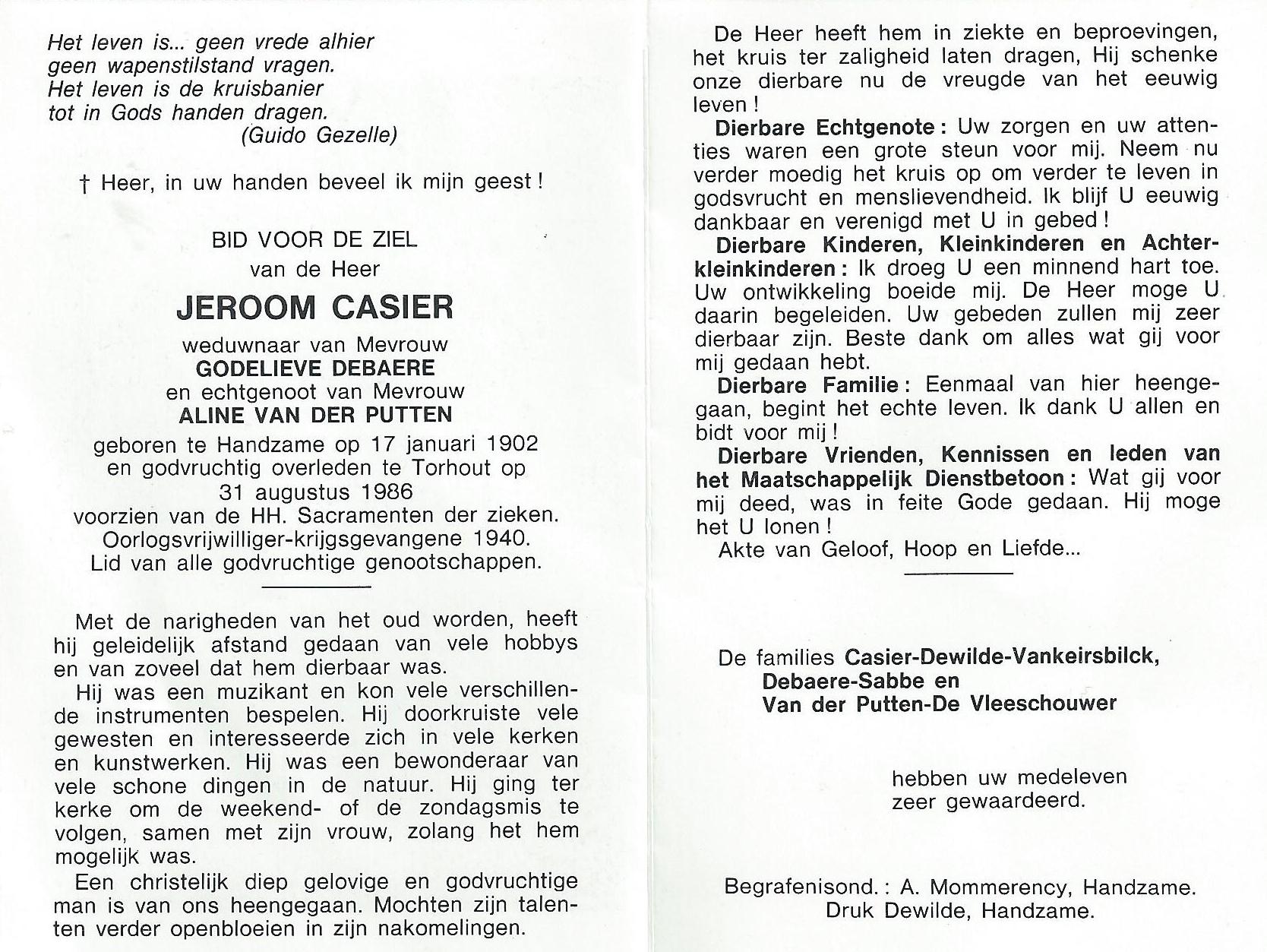 Jeroom CasierLeeftijd: 84 jaar1902–1986