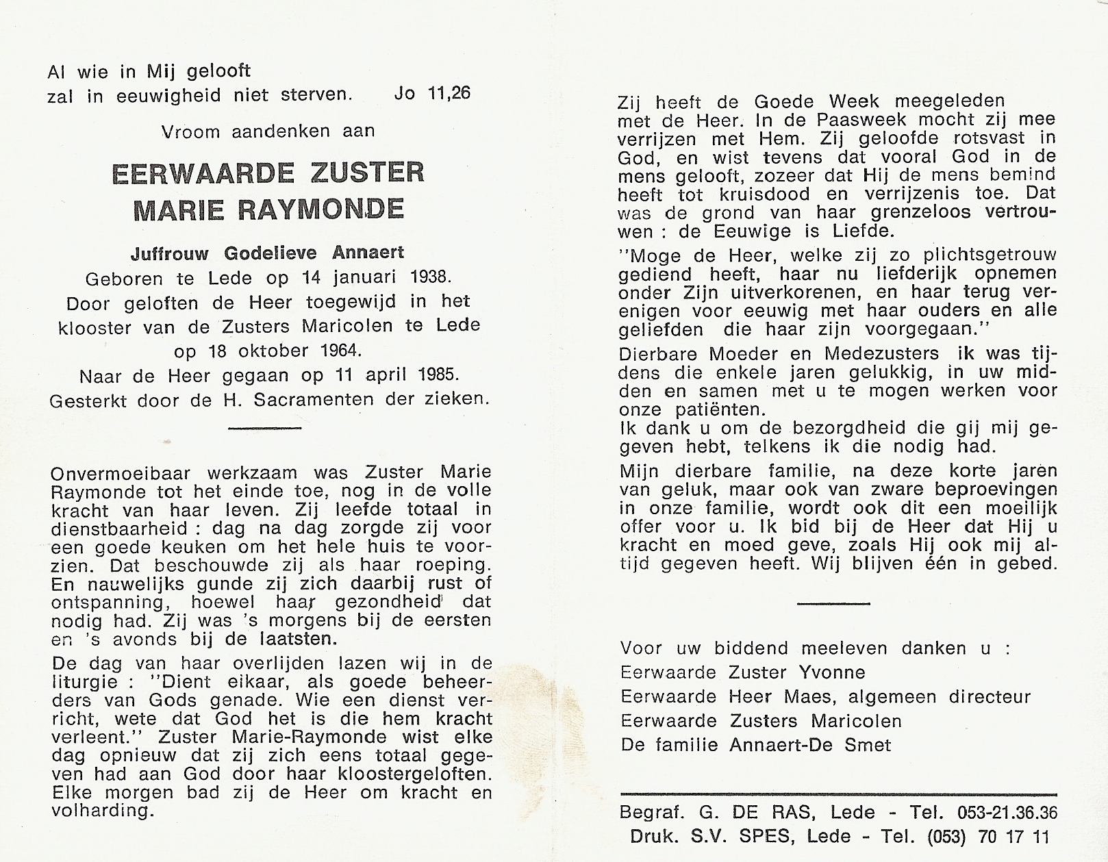 Overlijden van een kleindochter | Godelieve Odile Henriette Annaert 11 april 1985 |
