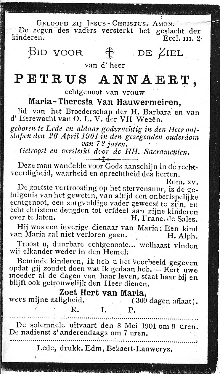 Overlijden van vader | Petrus Annaert 26 april 1901 (Leeftijd 36 jaar) |