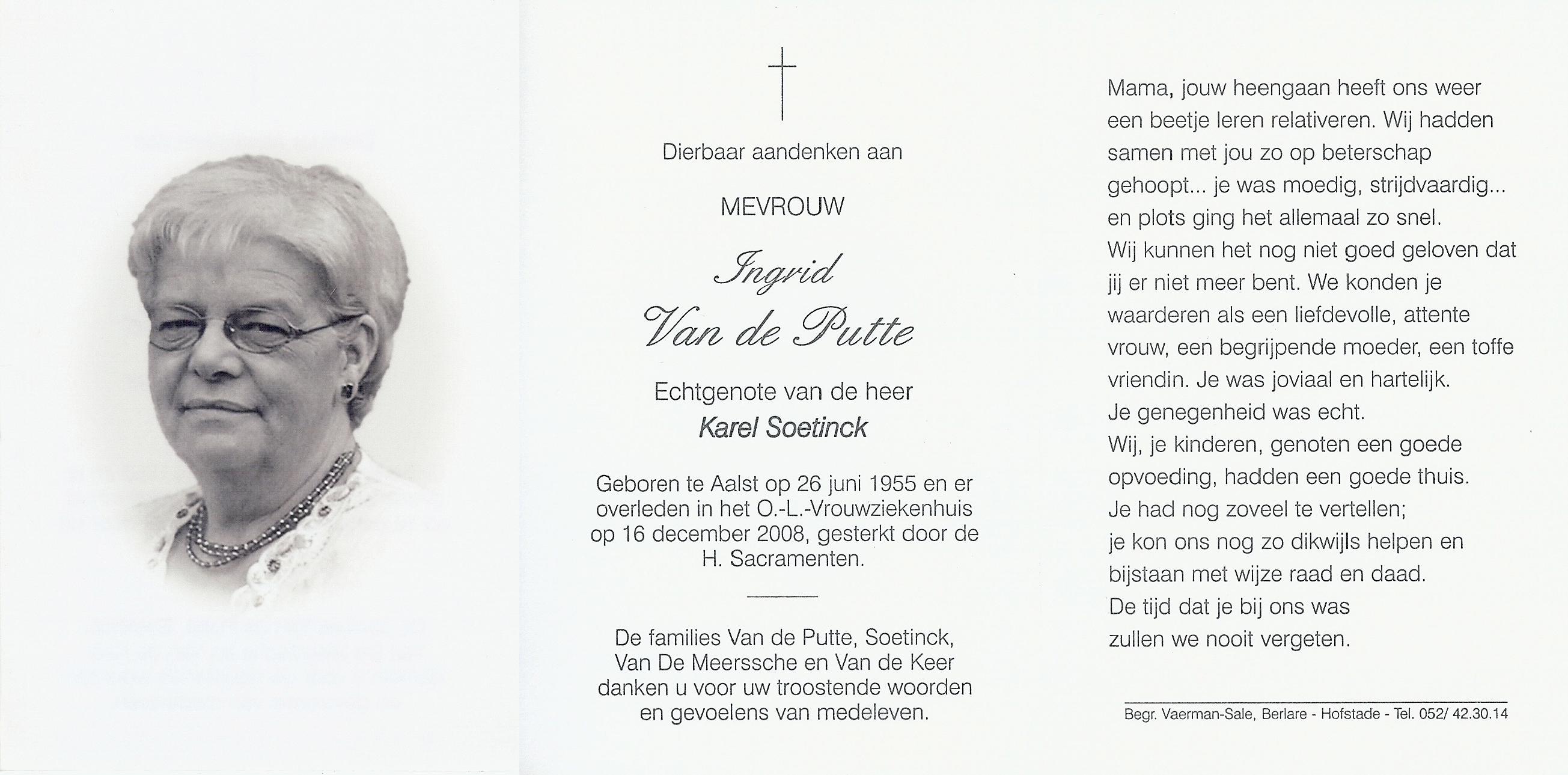 Ingrid Van de PutteLeeftijd: 53 jaar1955–2008