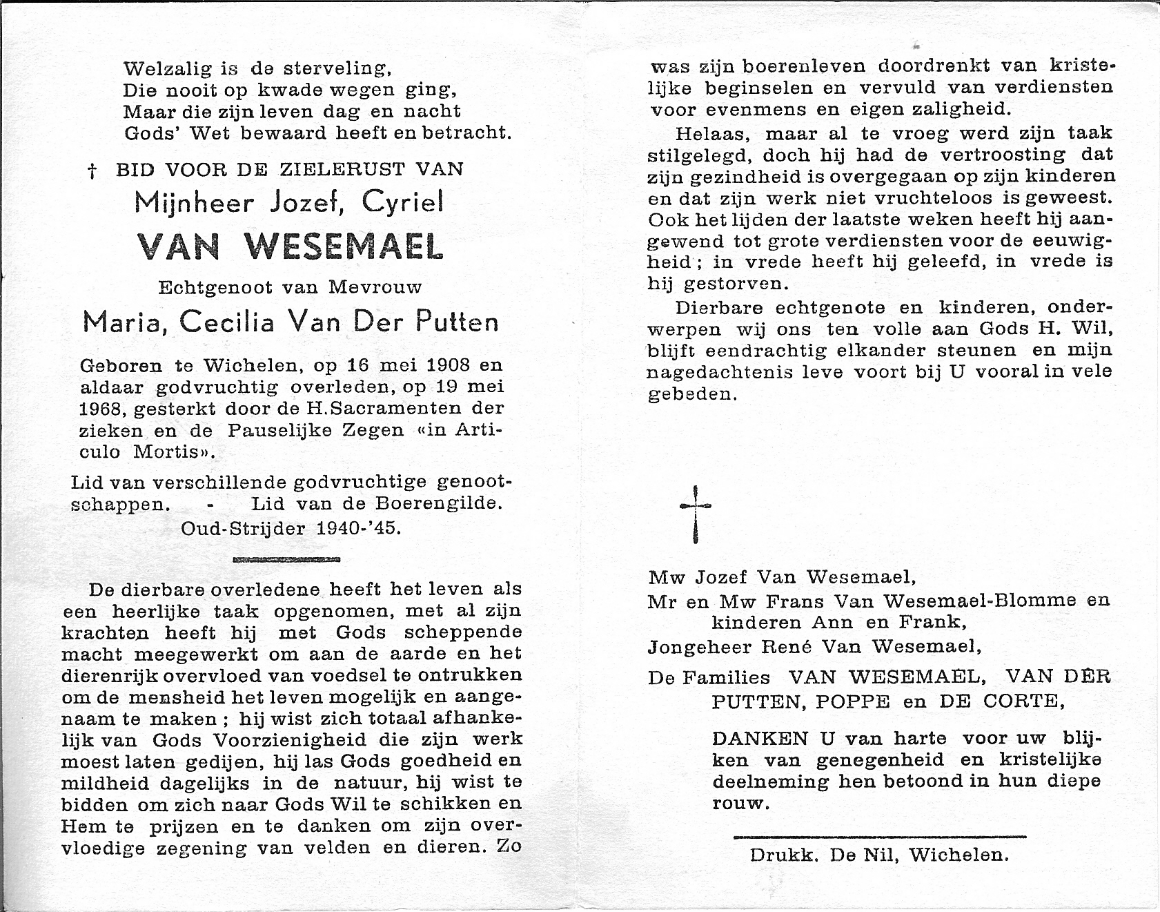 Begrafenis van vader | Jozef Cyrille Van Wesemael 24 mei 1968 (Leeftijd 23 jaar) |