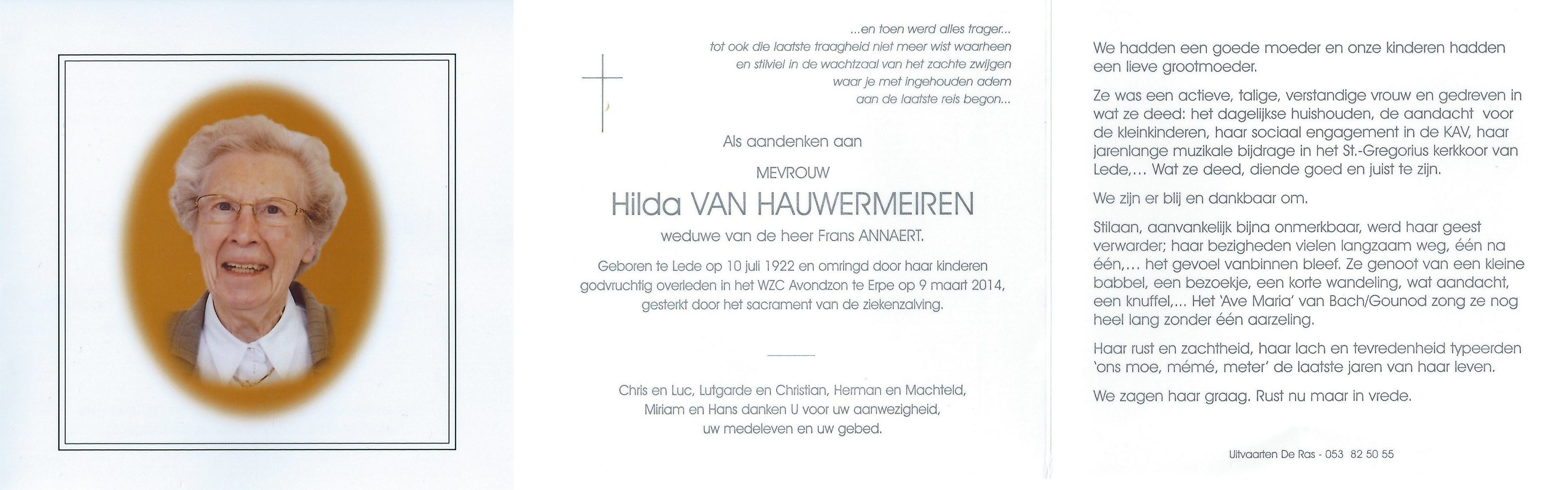 Hilda Julienne Van HauwermeirenLeeftijd: 91 jaar1922–2014