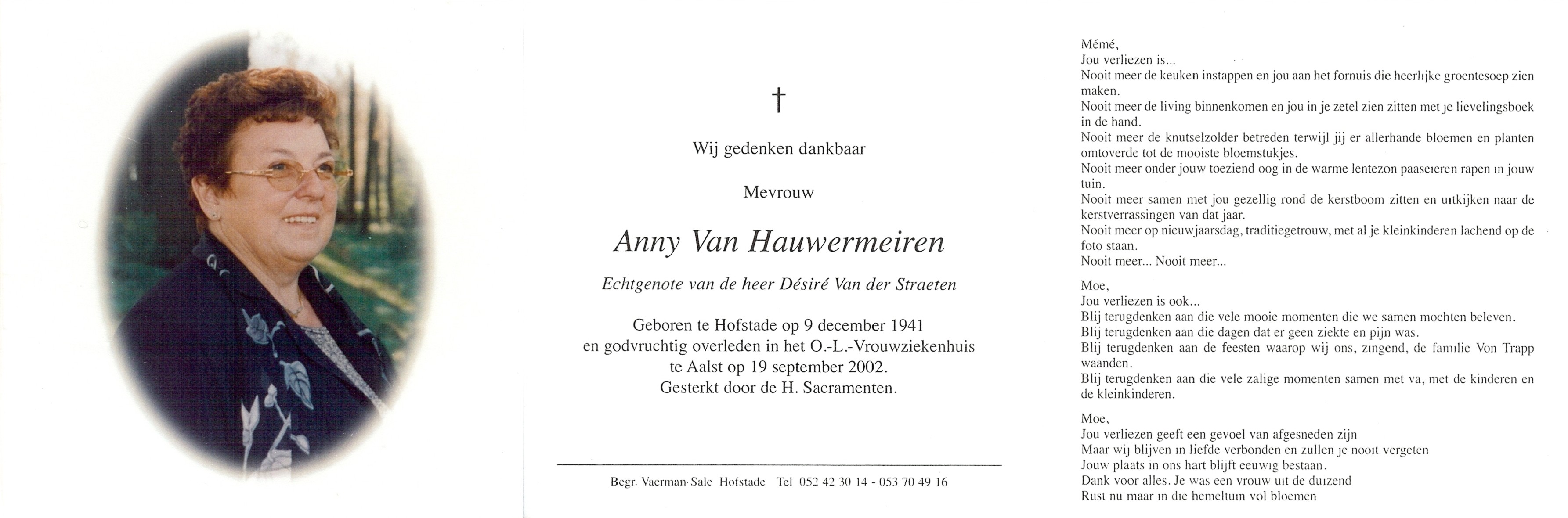 Anny Van HauwermeirenLeeftijd: 60 jaar1941–2002
