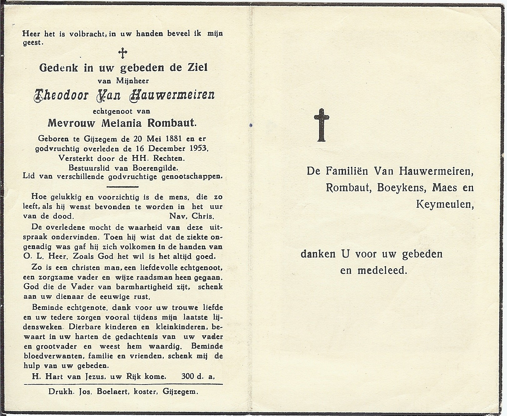 Overlijden van vader | Theodor Van Hauwermeiren 16 december 1953 (Leeftijd 34 jaar) |