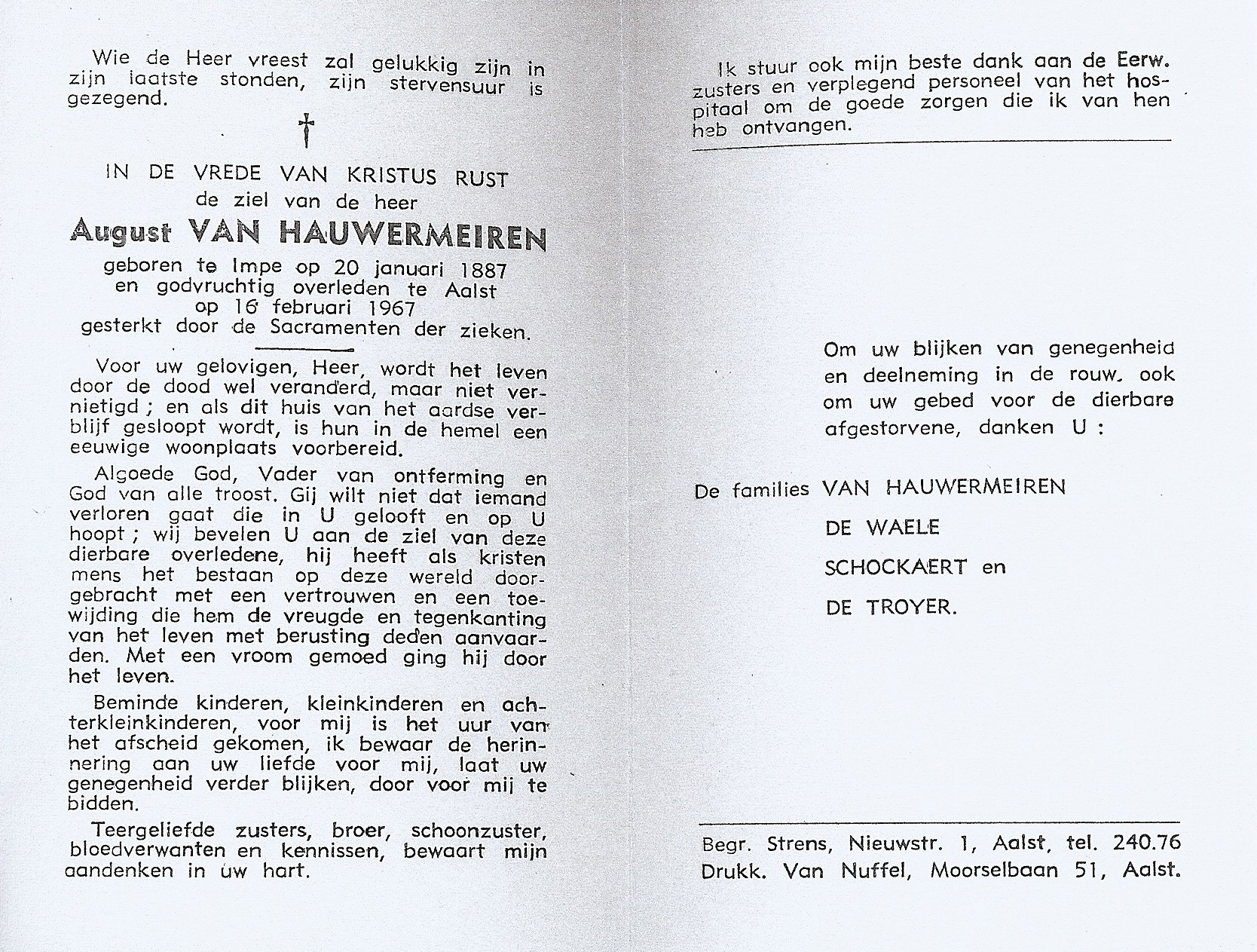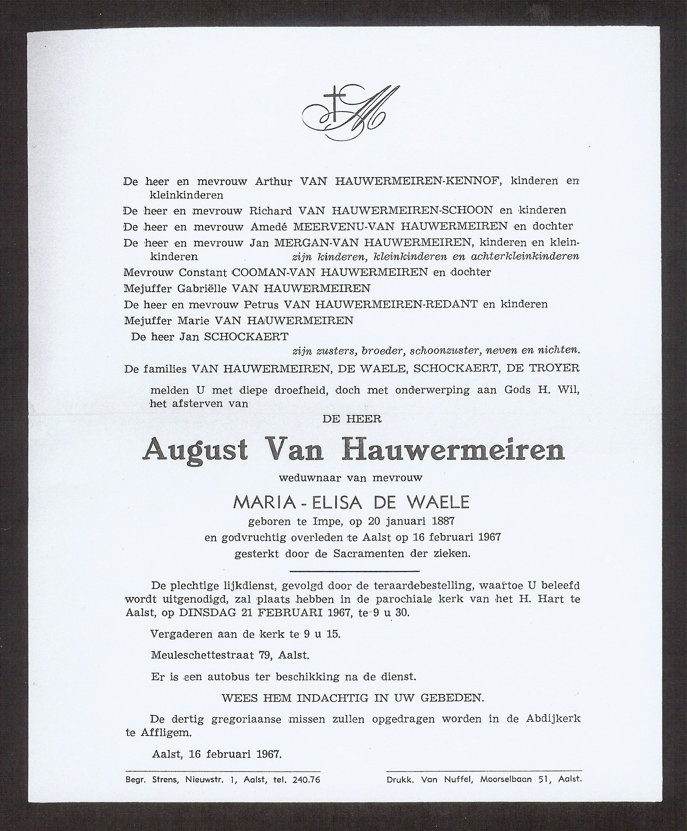 Begrafenis van grootvader van vaders kant | August Van Hauwermeiren 21 februari 1967 (Leeftijd 23 jaar) |