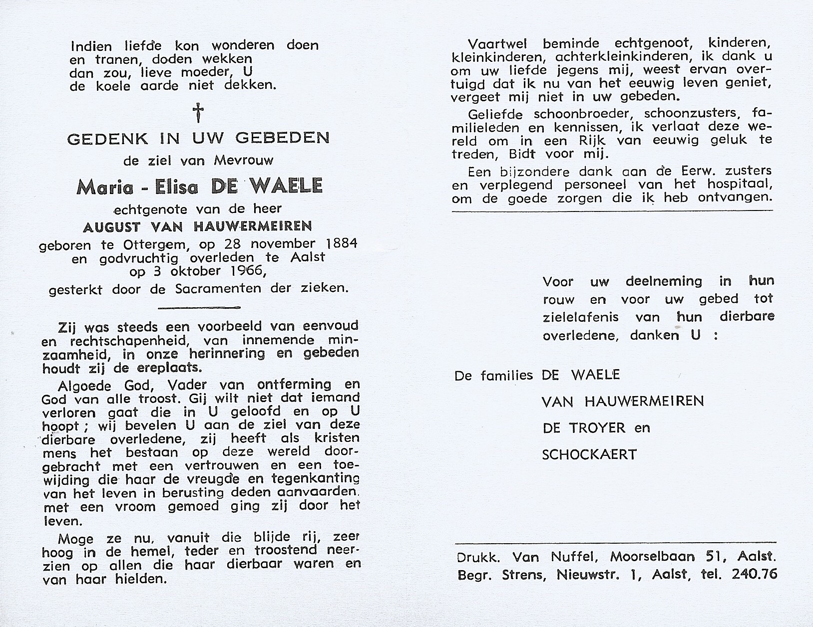 Begrafenis van grootmoeder van vaders kant | Marie-Elisa De Waele 7 oktober 1966 (Leeftijd 22 jaar) |