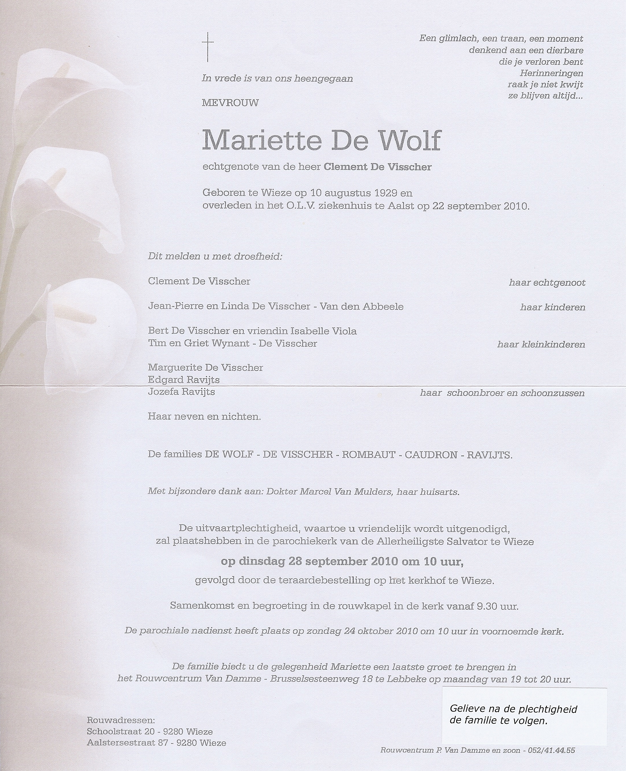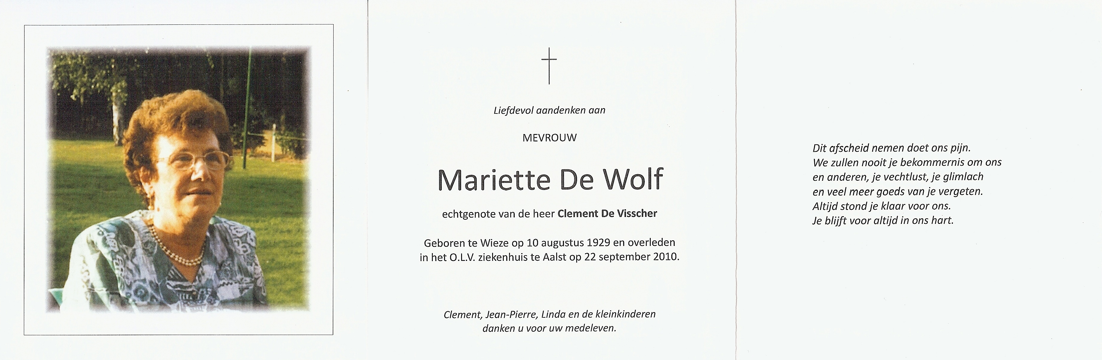 Mariette De WolfLeeftijd: 81 jaar1929–2010