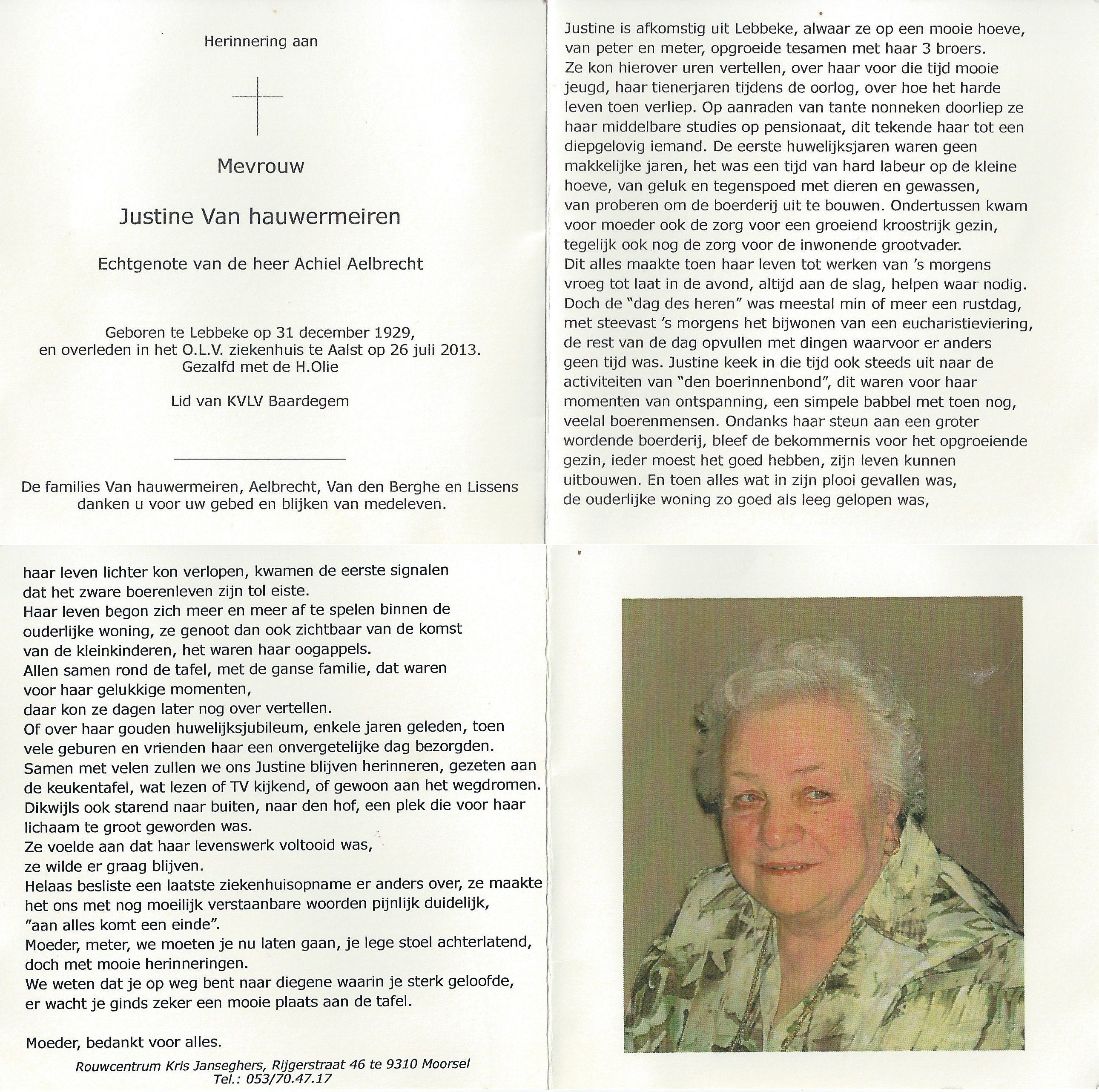 Justine Van HauwermeirenLeeftijd: 83 jaar1929–2013