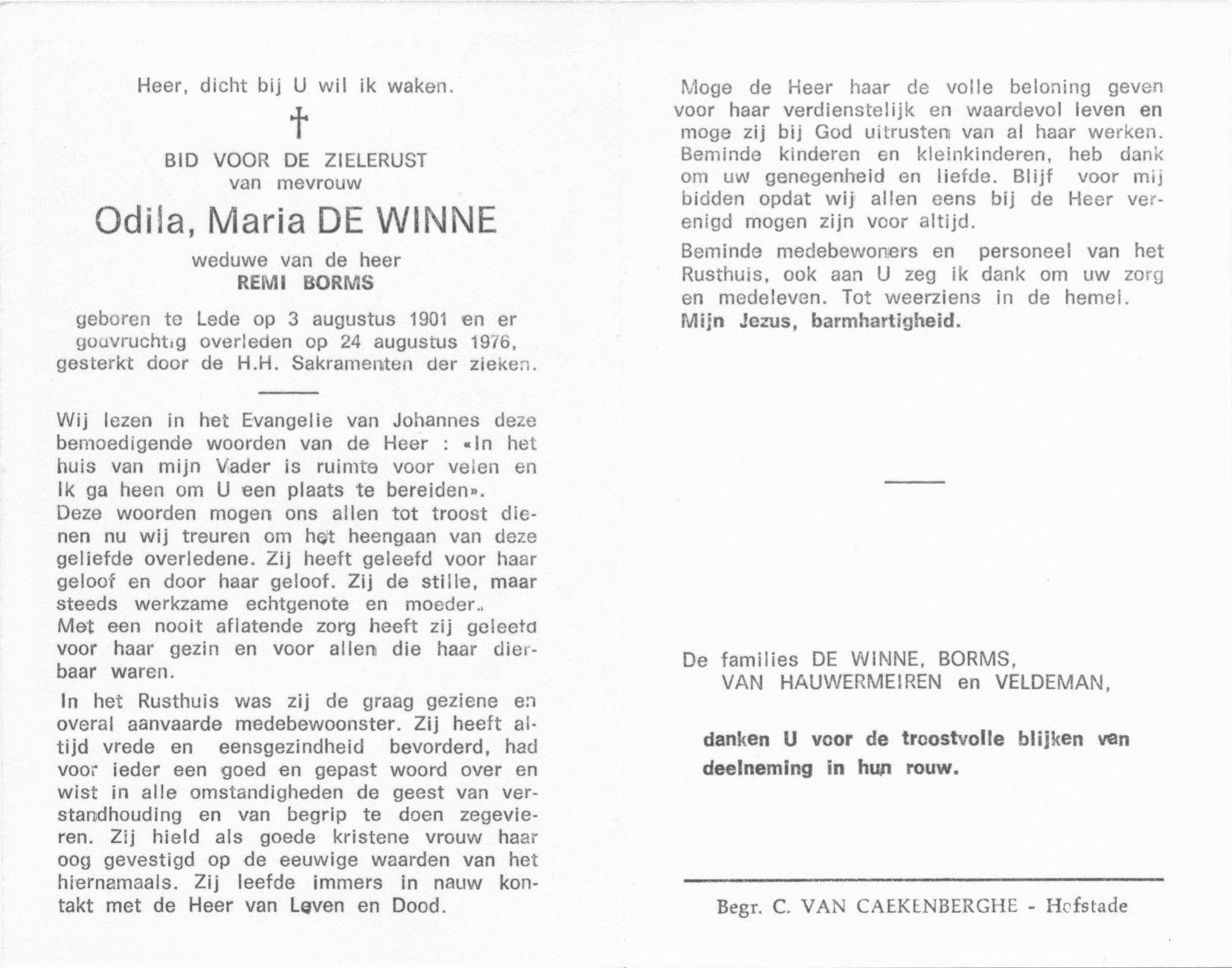 Overlijden van een zus | Odila Maria De Winne 25 augustus 1976 (Leeftijd 69 jaar) Gedeelde notitie: Datum: 24 of 25 augustus 1976