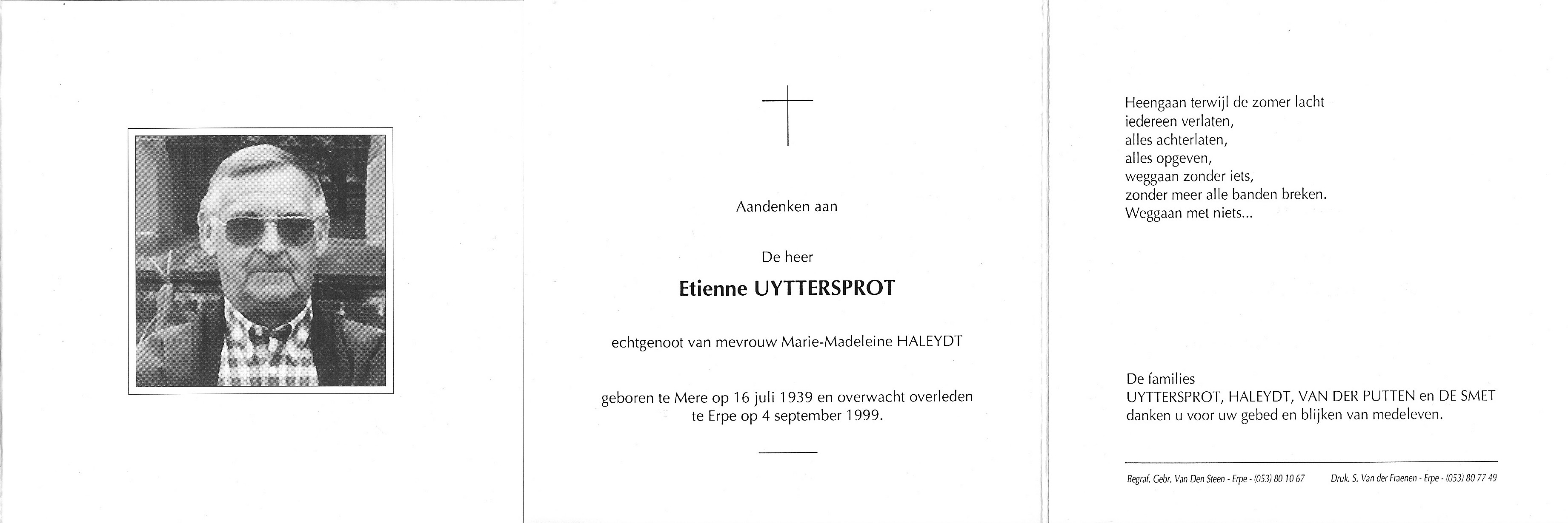 Overlijden van een broer | Etienne Gustave Madeleine Uyttersprot 4 september 1999 (Leeftijd 53 jaar) |