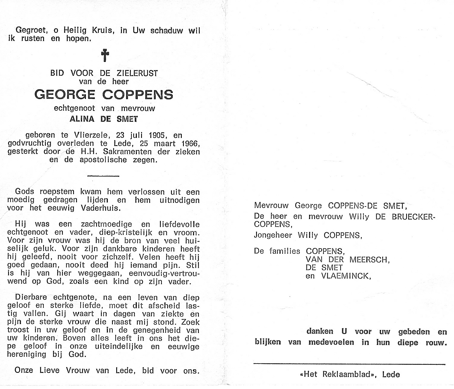 George Coppens Geboren: 23 juli 1905 28 20 — Vlierzele Overleden: 25 maart 1966 — Lede |