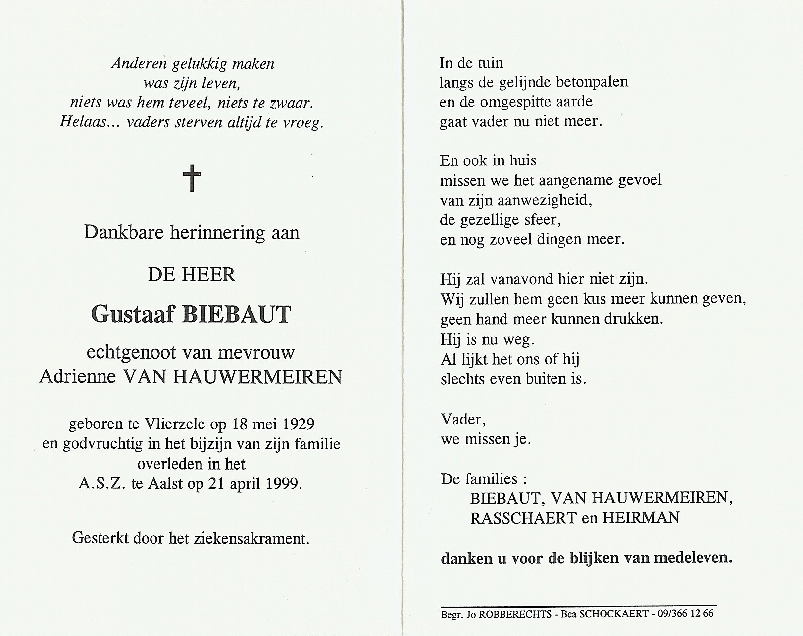 | Gustaaf Charles Louis Biebaut | 18 mei 1929 | 96 | Vlierzele | 3 | 21 april 1999 | 26 | 69 | Aalst | 16 november 2011 - 17:33:00 | M | Y100 | Y100 | R | |||