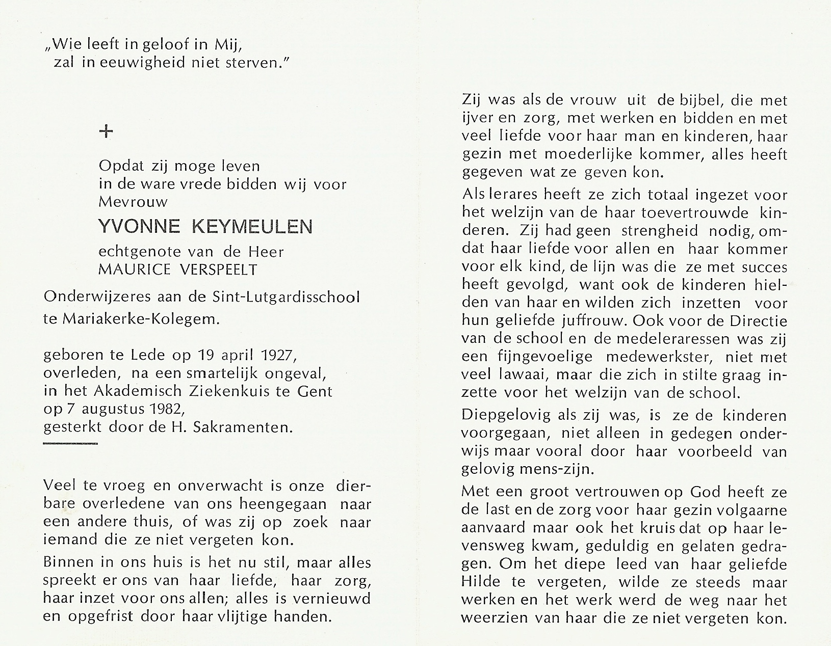 Overlijden van een kleindochter | Yvonne Keymeulen 7 augustus 1982 |