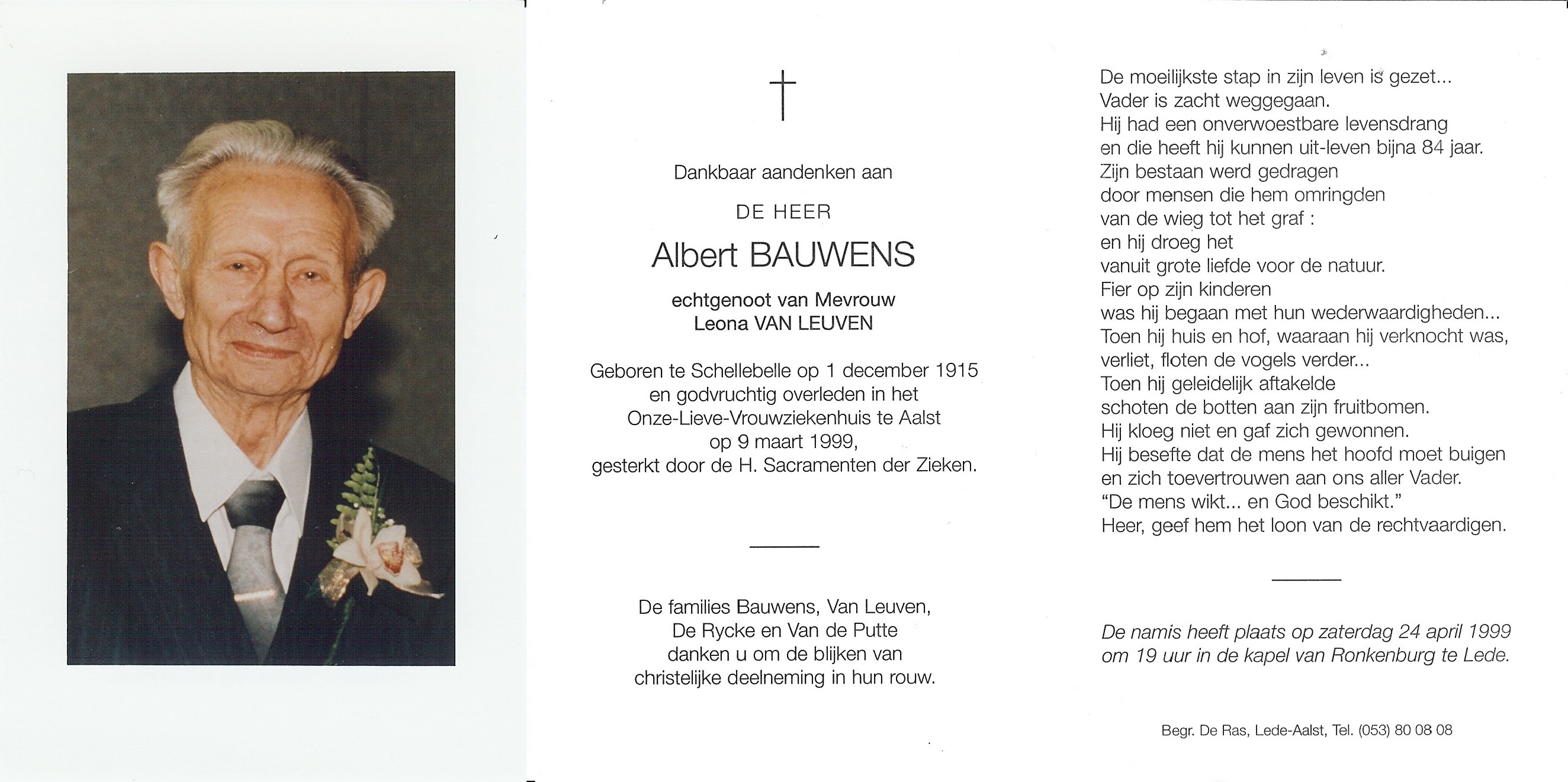 Overlijden van een zoon | Albert Bauwens 9 maart 1999 |