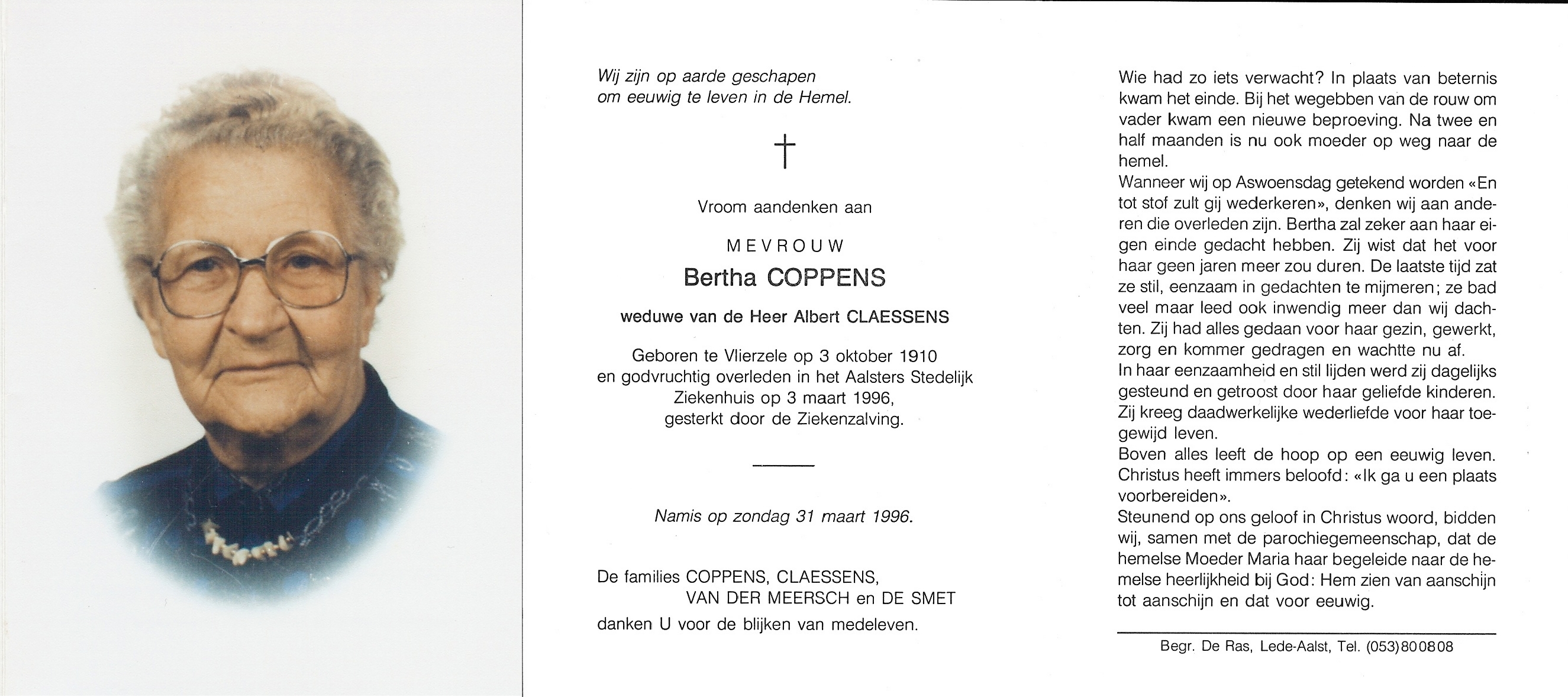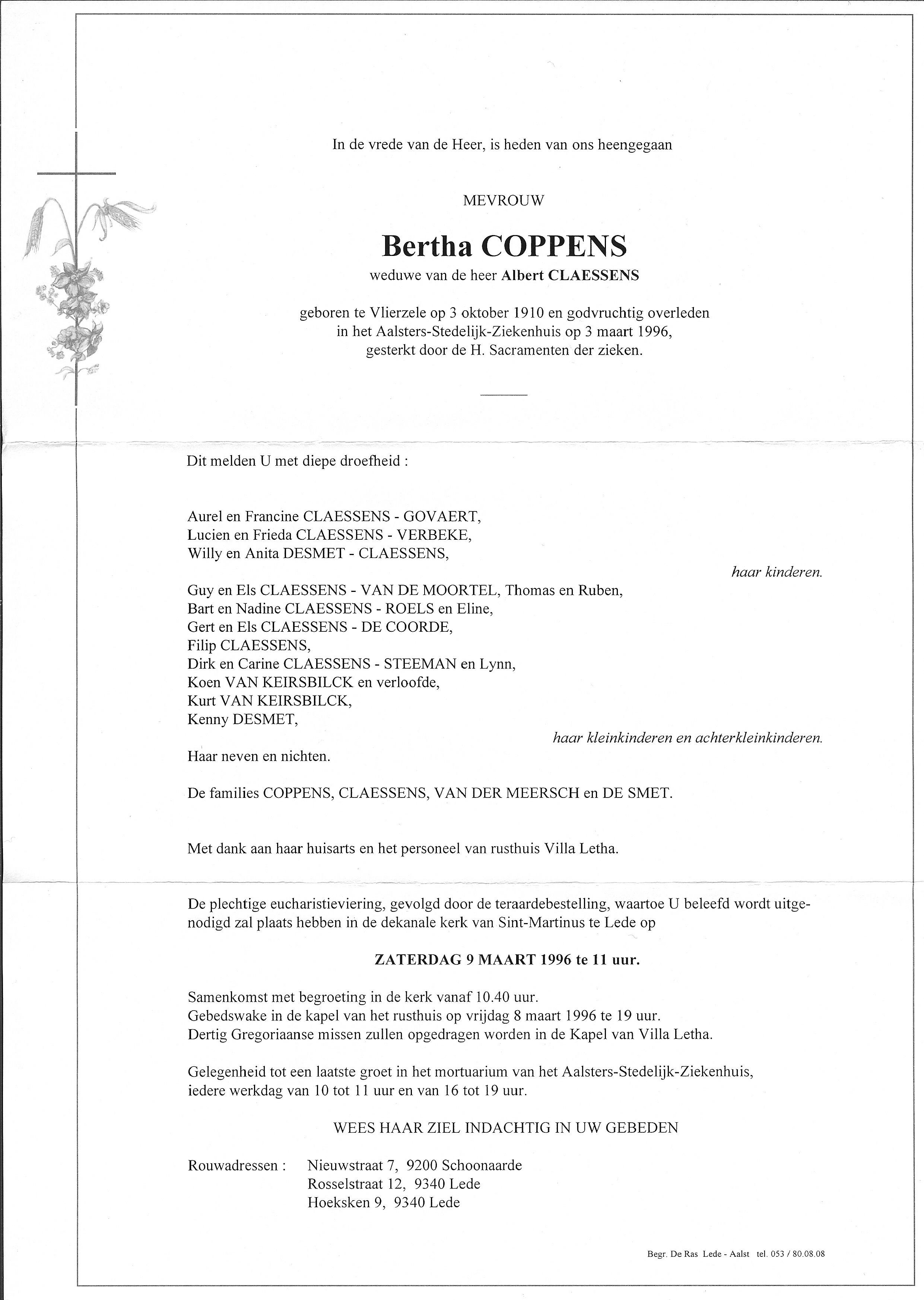 Bertha Rosalia CoppensLeeftijd: 85 jaar1910–1996