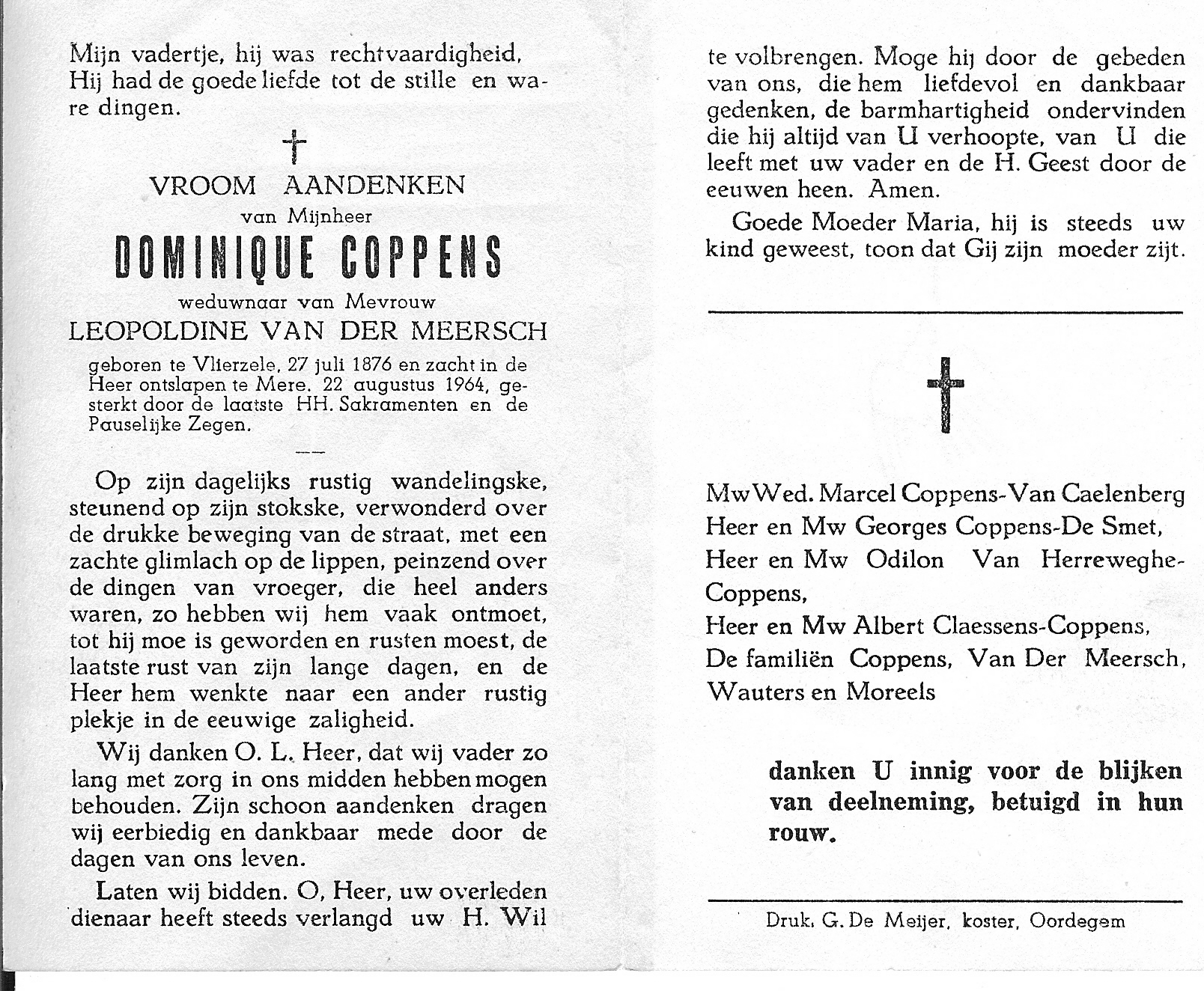 Dominique Coppens Geboren: 27 juli 1876 39 — Vlierzele Overleden: 22 augustus 1964 — Mere |