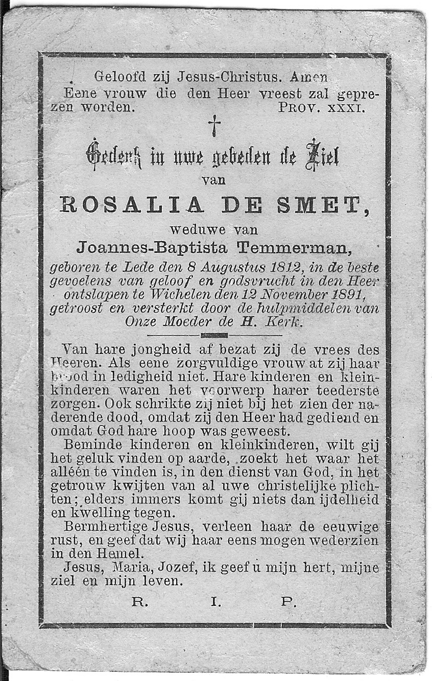 Rosalia Van Hauwermeiren Geboren: 7 april 1836 58 34 — Wichelen Overleden: 15 maart 1905 — Schoonaarde |