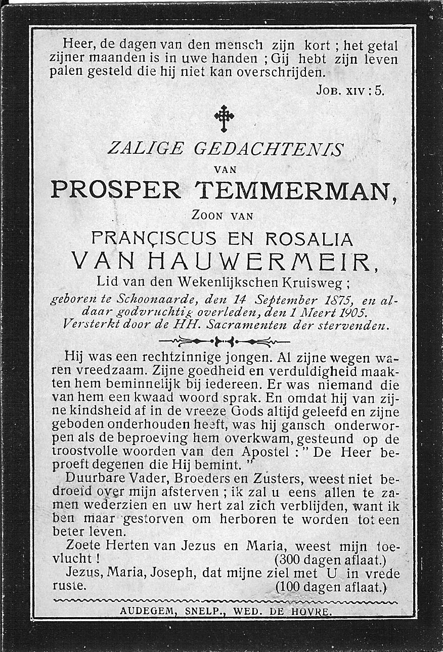 Overlijden van een broer | Prosper Temmerman 1 maart 1905 (Leeftijd 35 jaar) |