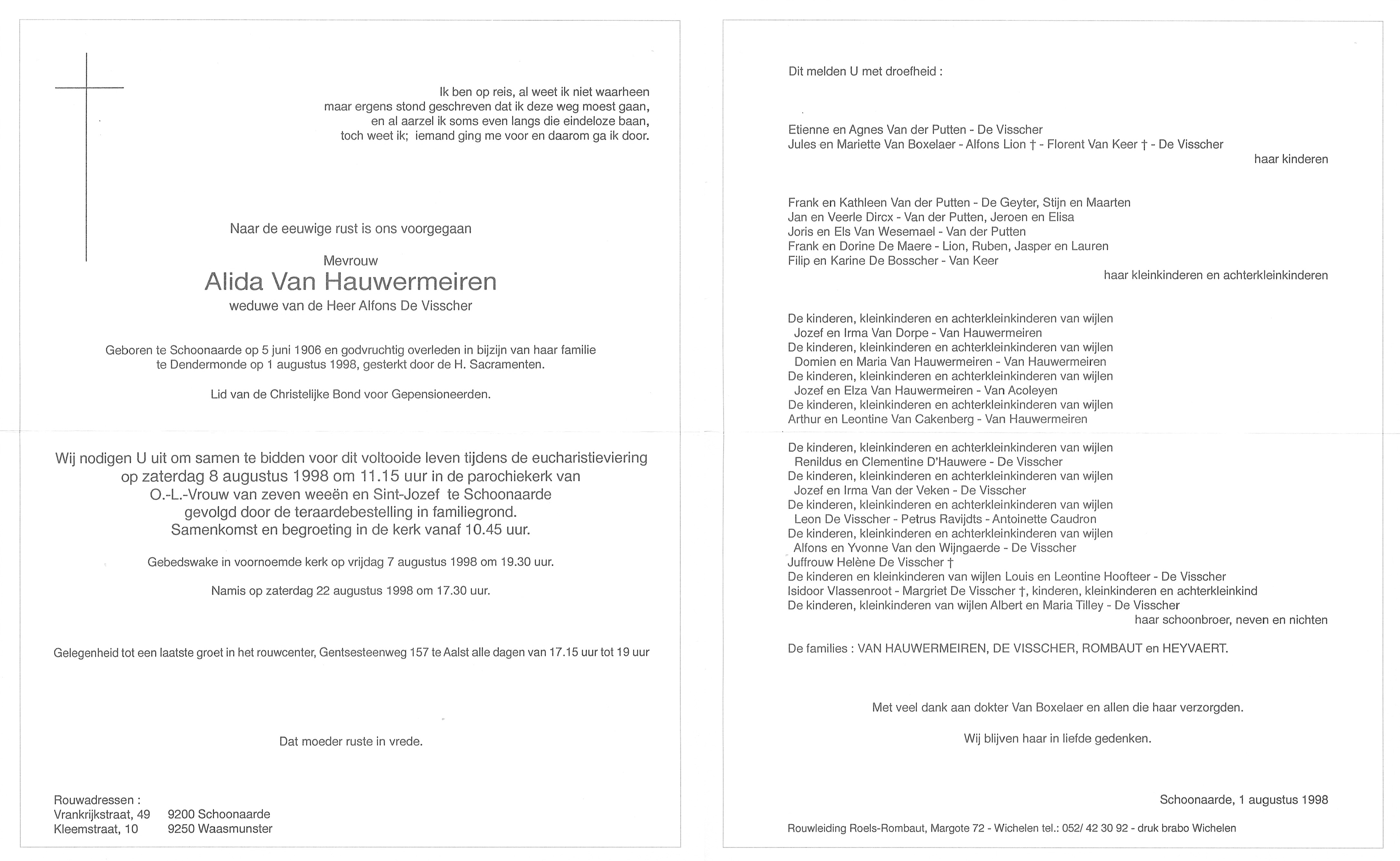 Alida Van HauwermeirenLeeftijd: 92 jaar1906–1998