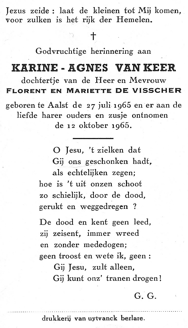 Overlijden van een kleindochter | Karine Agnes Van Keer 12 oktober 1965 (Leeftijd 59 jaar) |
