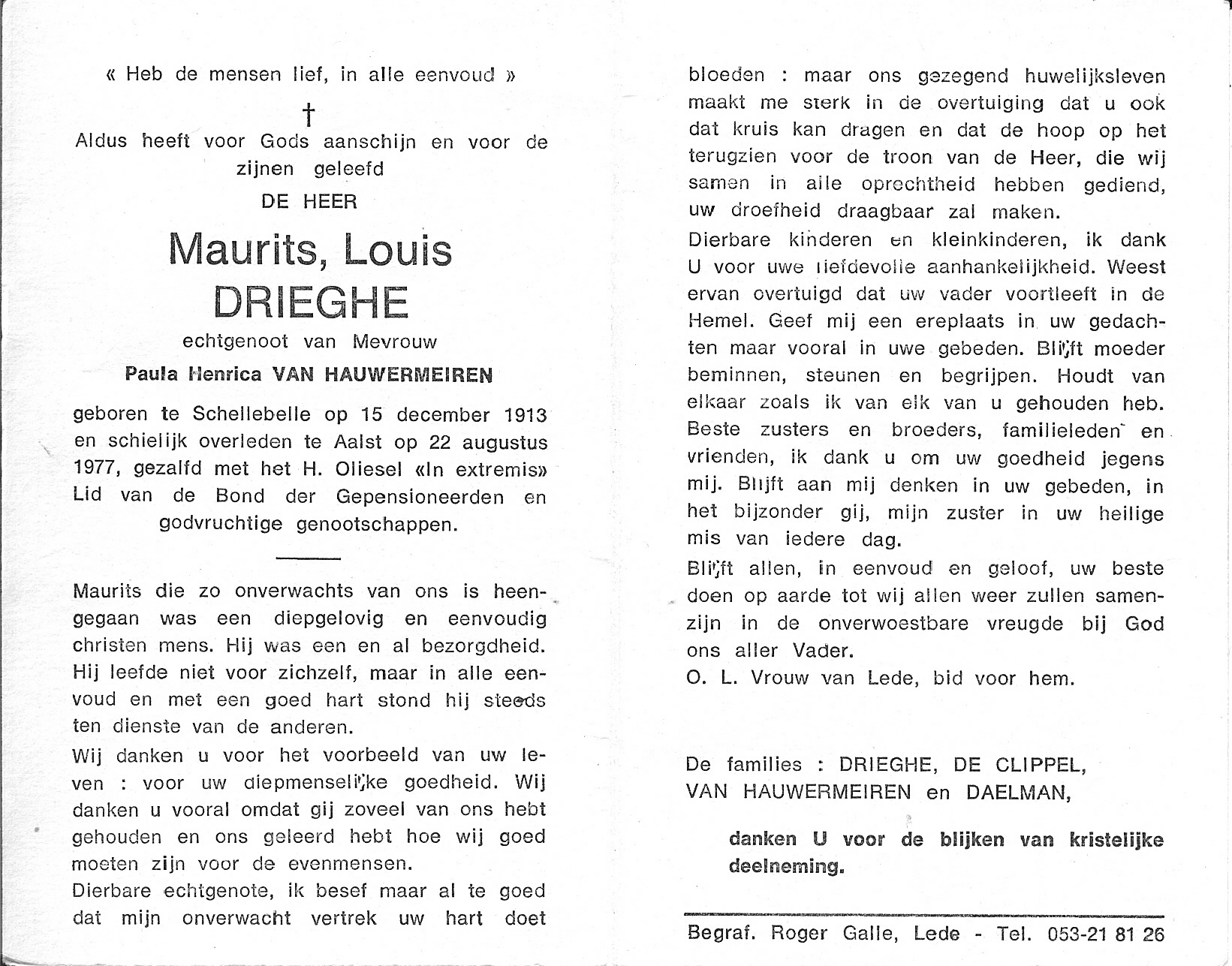 Maurits Louis Drieghe Geboren: 15 december 1913 34 — Schellebelle Overleden: 22 augustus 1977 — Aalst |