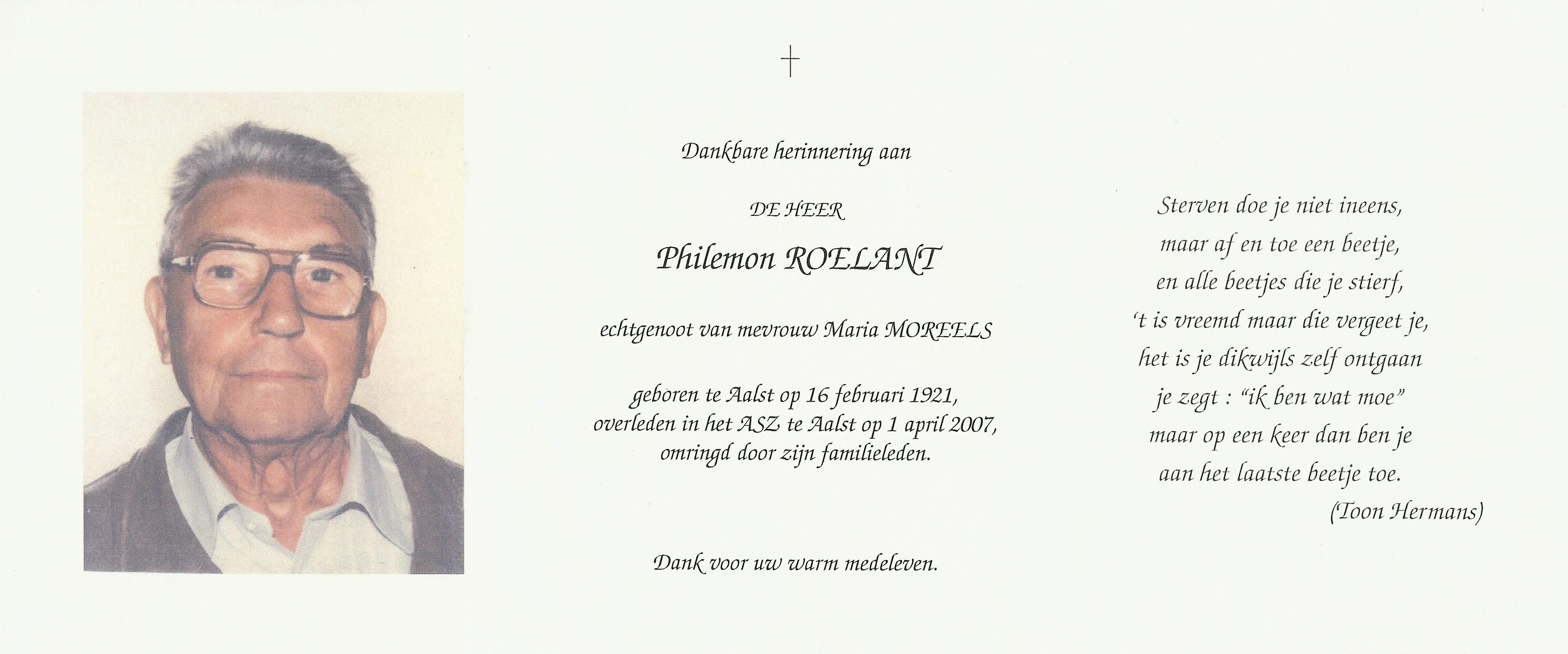 Overlijden van een echtgenoot | Philemon Roelant 1 april 2007 (Leeftijd 83 jaar) |