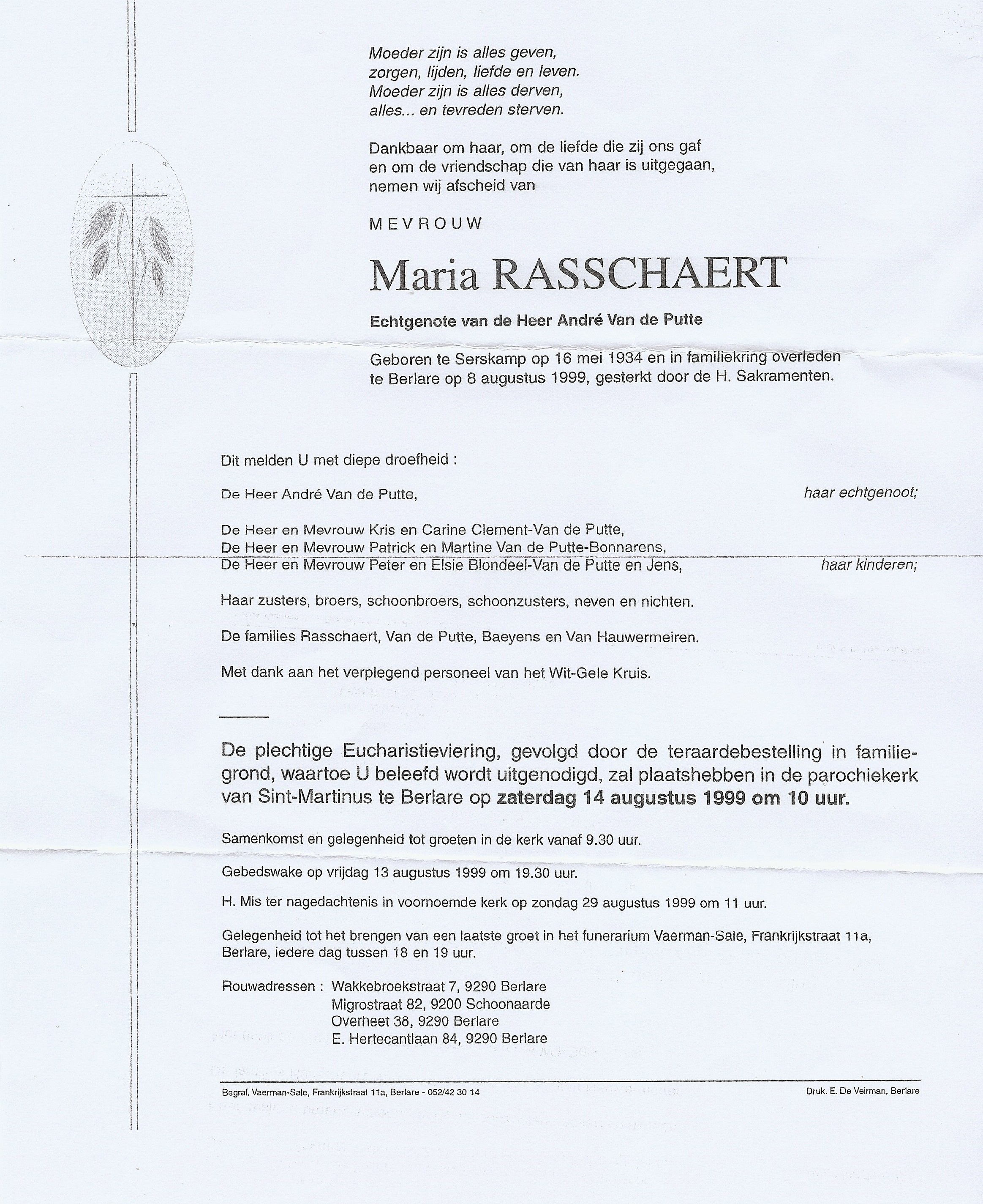 Maria RasschaertLeeftijd: 65 jaar1934–1999